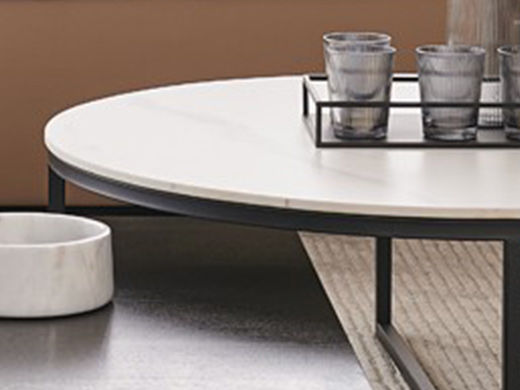 逸澜斯 极简 慕丝白(白龙玉)微晶石+太空灰 环保高密度板+实木+钛金脚 1.3米茶几