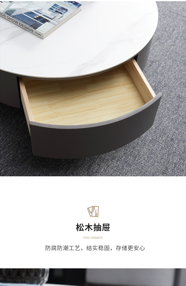 B系优选 现代简约 E1板材高级亮光灰烤漆,实木抽屉+亮光雪山石岩板面+五金脚 1.3米茶几
