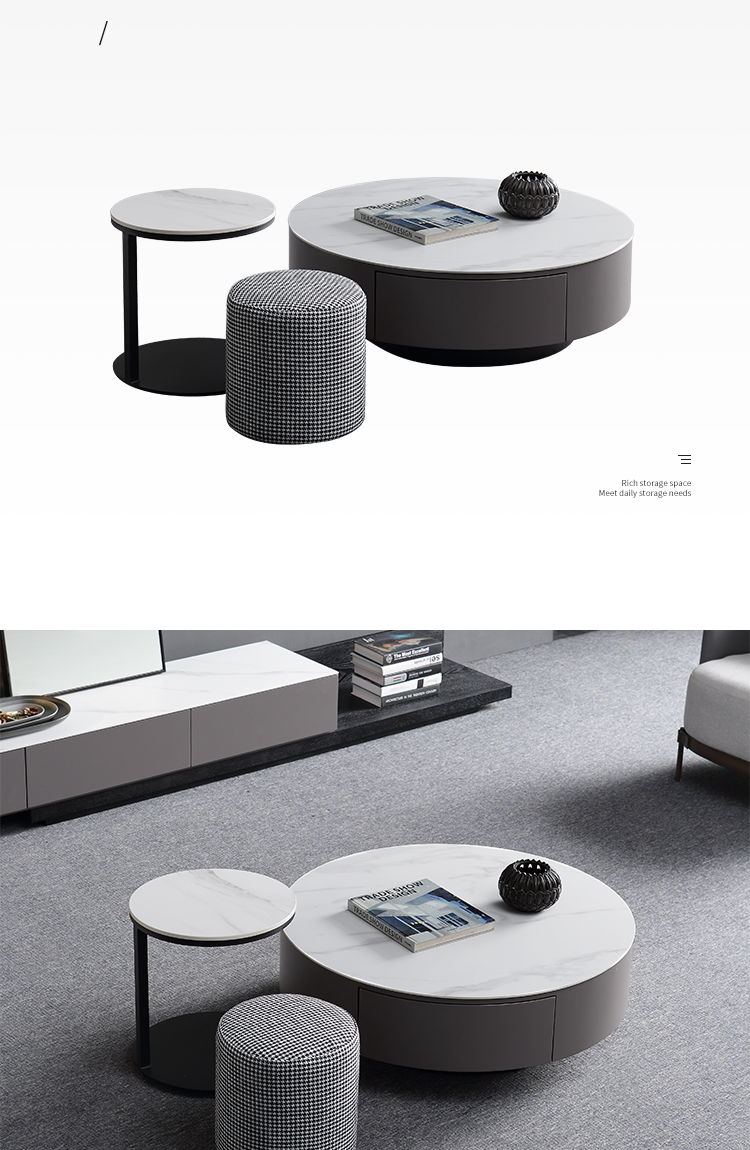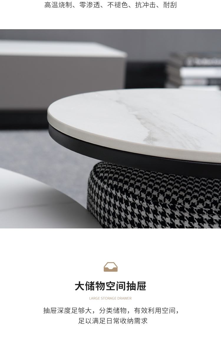 B系优选 现代简约 E1板材黑色实木铁皮+哑光雪山石+维克灰岩板面,实木抽屉+碳素钢底架 0.8米组合茶几¥2330
