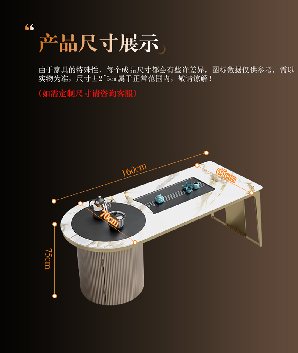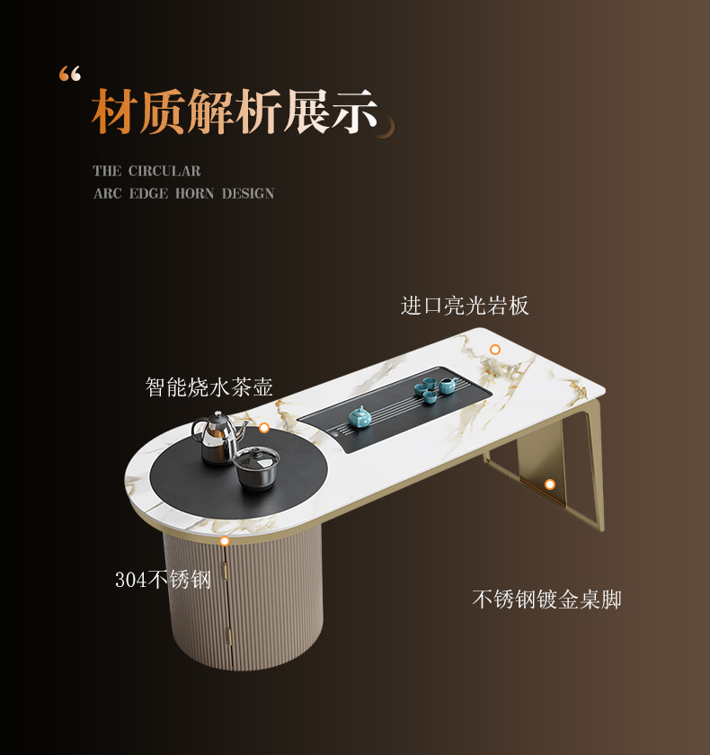 柏思戈 轻奢 不锈钢架子 钛金 灰刚两种颜色+电磁炉+消毒壶+水桶+废水桶,+亮光岩板面带茶盘 不锈钢钛金 1.6米茶台
