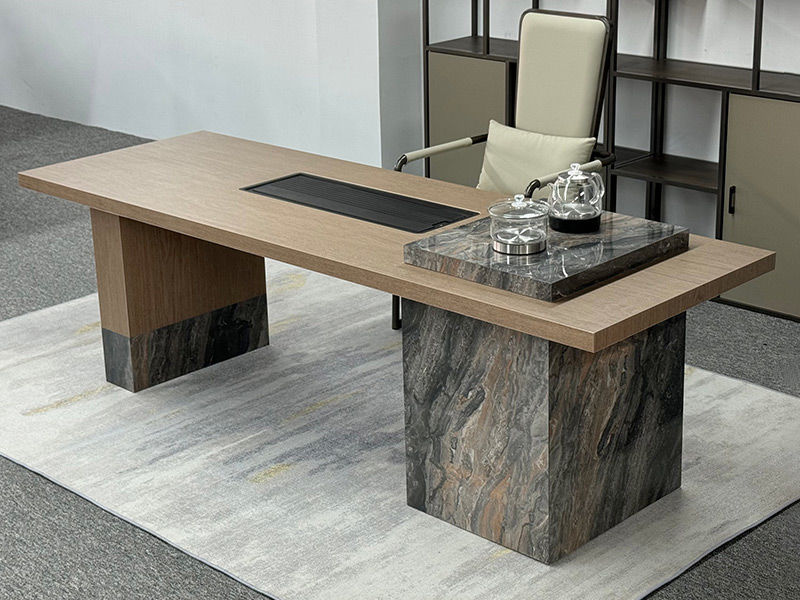 上铭轩 轻奢 岩板+E1中纤板+多层实木板+碳素钢五金+电茶炉(不含椅子茶具) 1.8米茶书桌