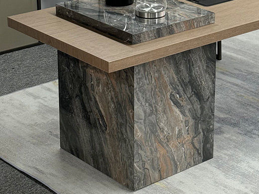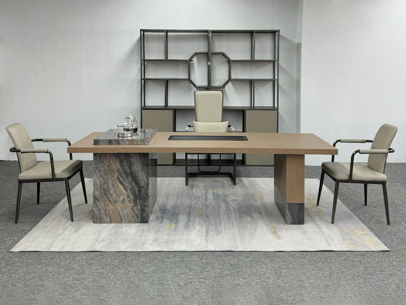 上铭轩 轻奢 香奈儿岩板+E1中纤板+碳素钢五金+电茶炉+一桌三椅 1.8米茶书桌¥5645