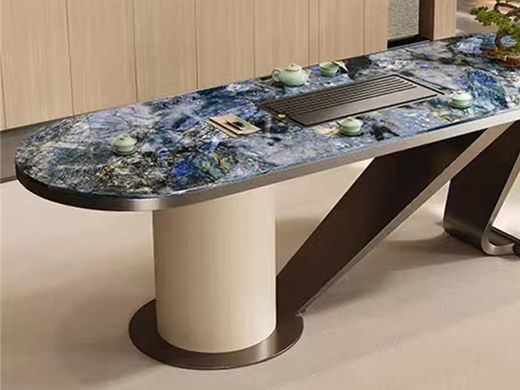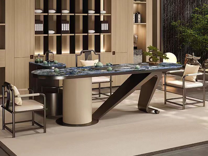 上铭轩 轻奢 实木框镶嵌岩板+碳素钢五金+仿真皮+电茶炉(不含椅子茶具) 2米岛台 茶台| 商品详情 | 规格参数 | 评价(0) | 购买咨询() | 产品实拍图 |