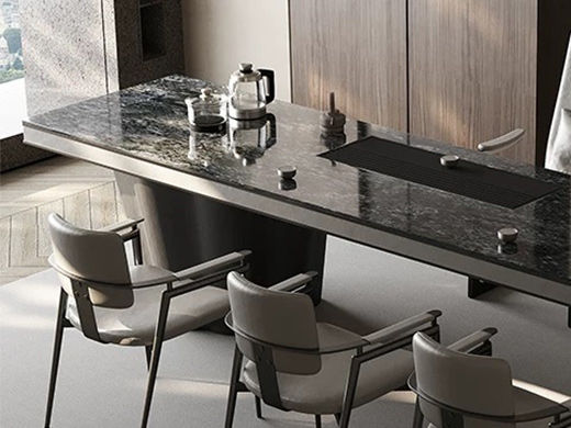 上铭轩 轻奢 岩板威尼斯棕+亚克力+碳素钢五金+电茶炉(不含椅子,茶具) 2米岛台 茶台