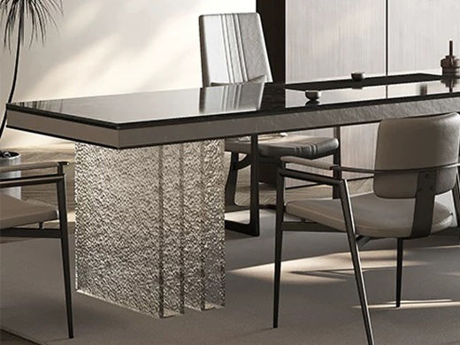 上铭轩 轻奢 香奈儿岩板+E1中纤板+碳素钢五金+电茶炉+一桌三椅 1.8米茶书桌¥5645