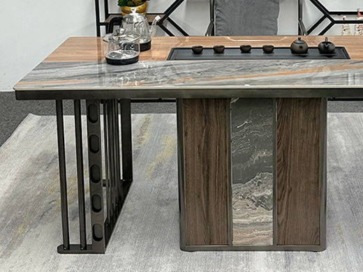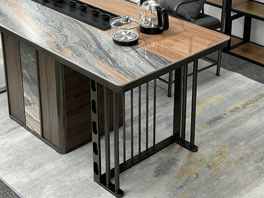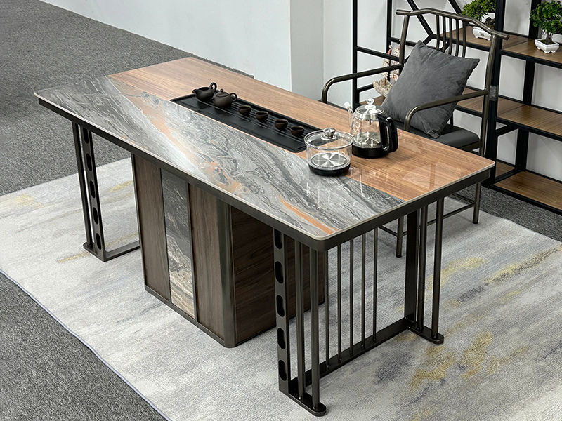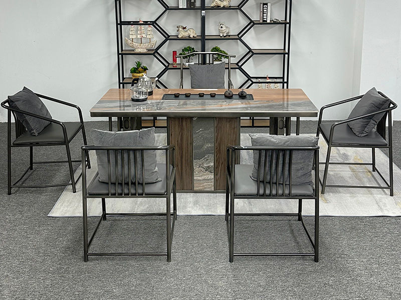 上铭轩 轻奢 香奈儿岩板+E1中纤板+碳素钢五金+电茶炉+一桌三椅 1.8米茶书桌¥5645