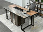上铭轩 轻奢 岩板+碳素钢五金+多层实木+电茶炉+一桌五椅(不含茶具) 1.6米岛台 茶台