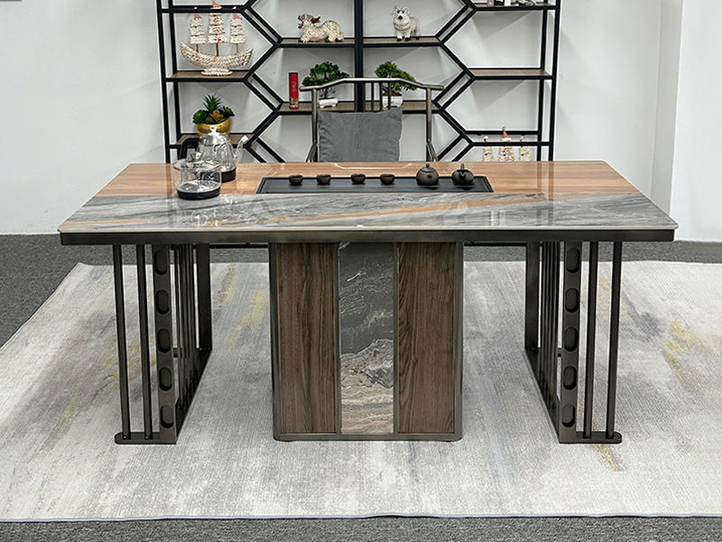上铭轩 轻奢 岩板+E1中纤板+多层实木板+碳素钢五金+电茶炉(不含椅子茶具) 1.8米茶书桌