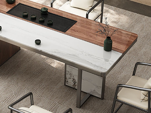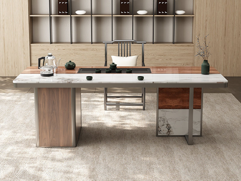 上铭轩 轻奢 香奈儿岩板+E1中纤板+碳素钢五金+电茶炉+一桌三椅 1.8米茶书桌¥5645