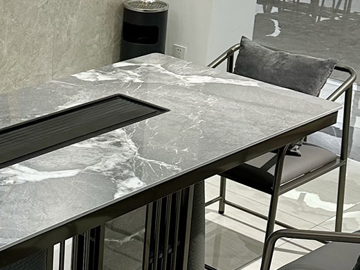 上铭轩 轻奢 香奈儿岩板+E1中纤板+碳素钢五金+电茶炉+一桌三椅 1.8米茶书桌¥5645
