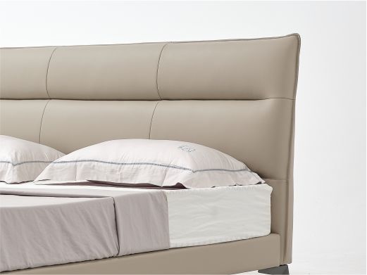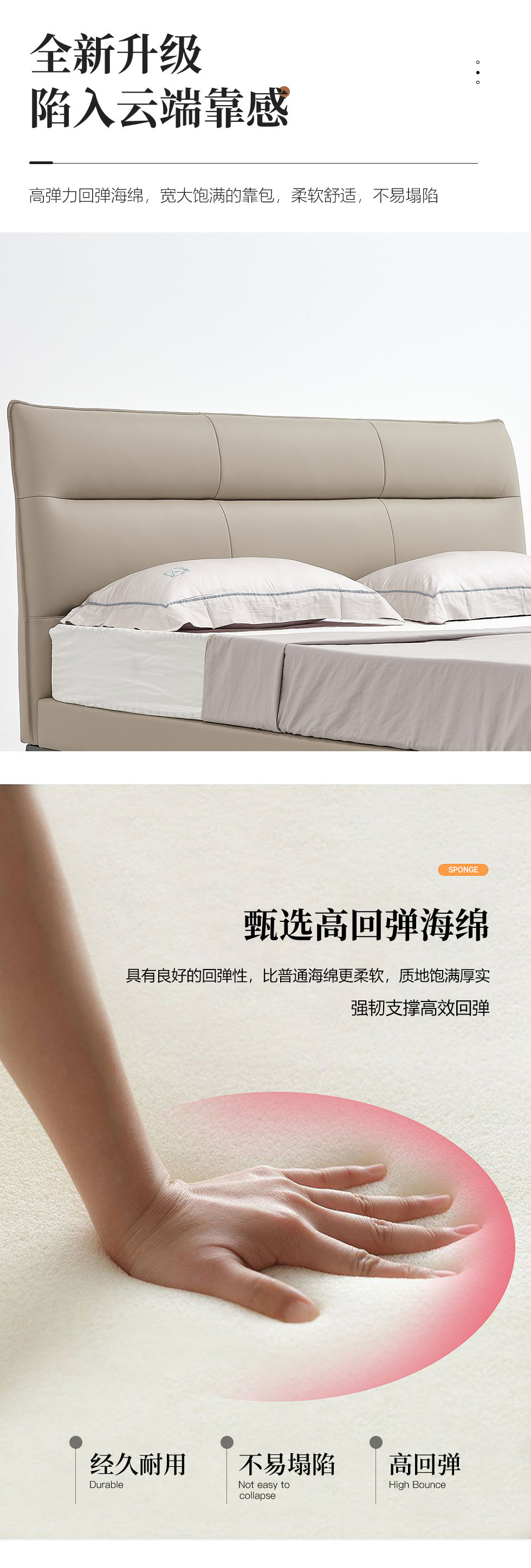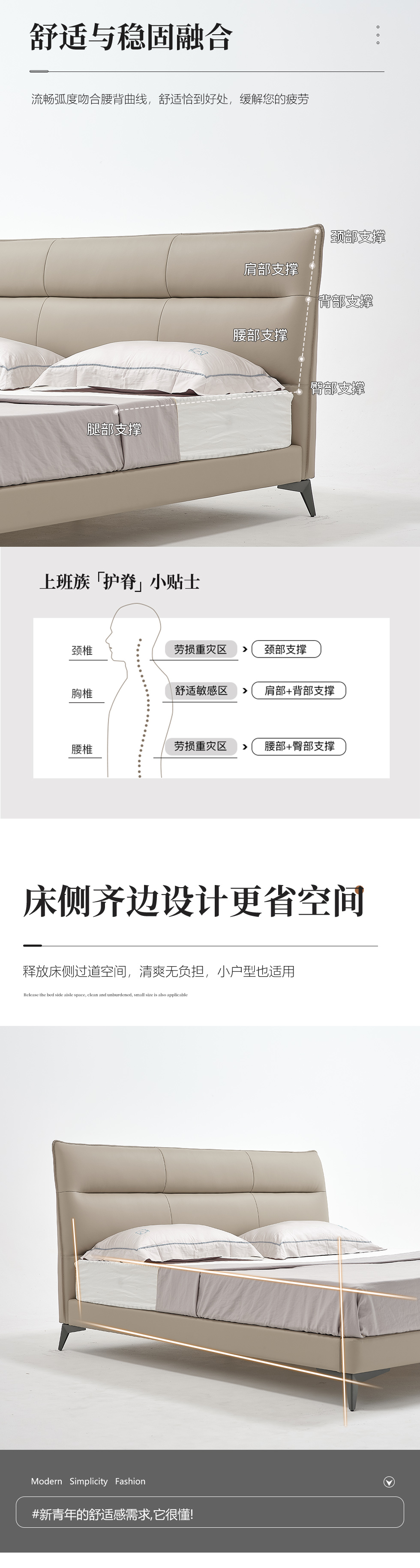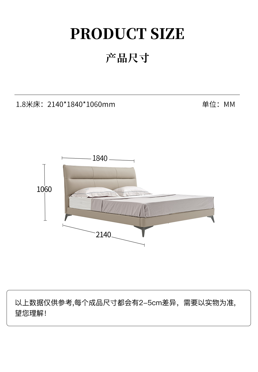 希奥 极简 接触面真皮+PVC+床架俄罗斯进口松木+多层实木板+E1密度板+多层实木板 浅灰色1.8米皮床