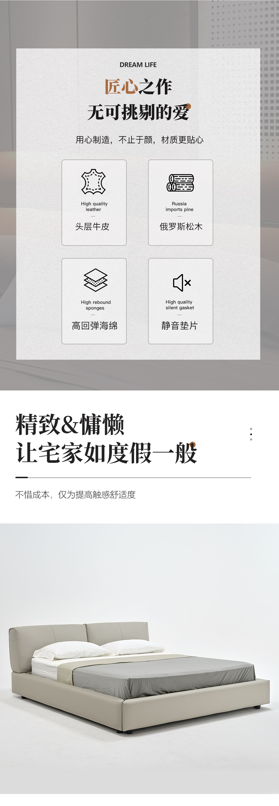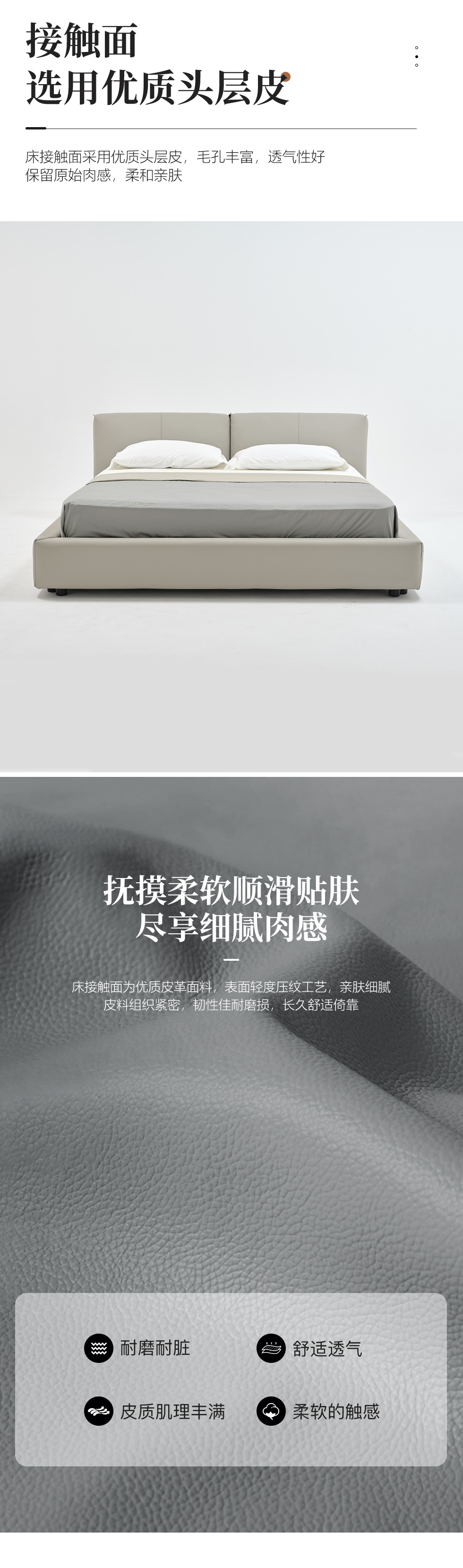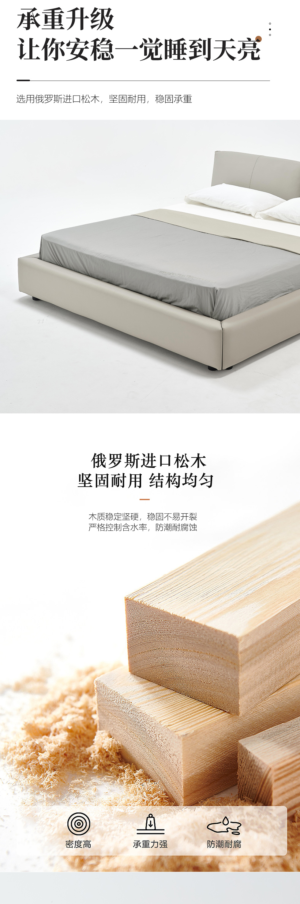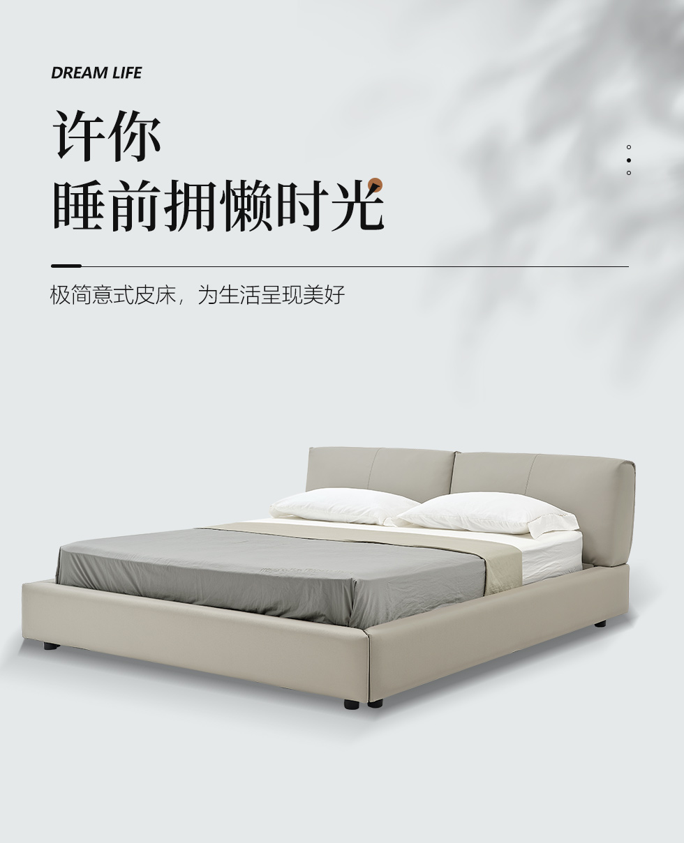 希奥 极简 俄罗斯进口松木+接触面真皮+PVC+多层实木板+实木排骨架 浅灰色1.8米皮床