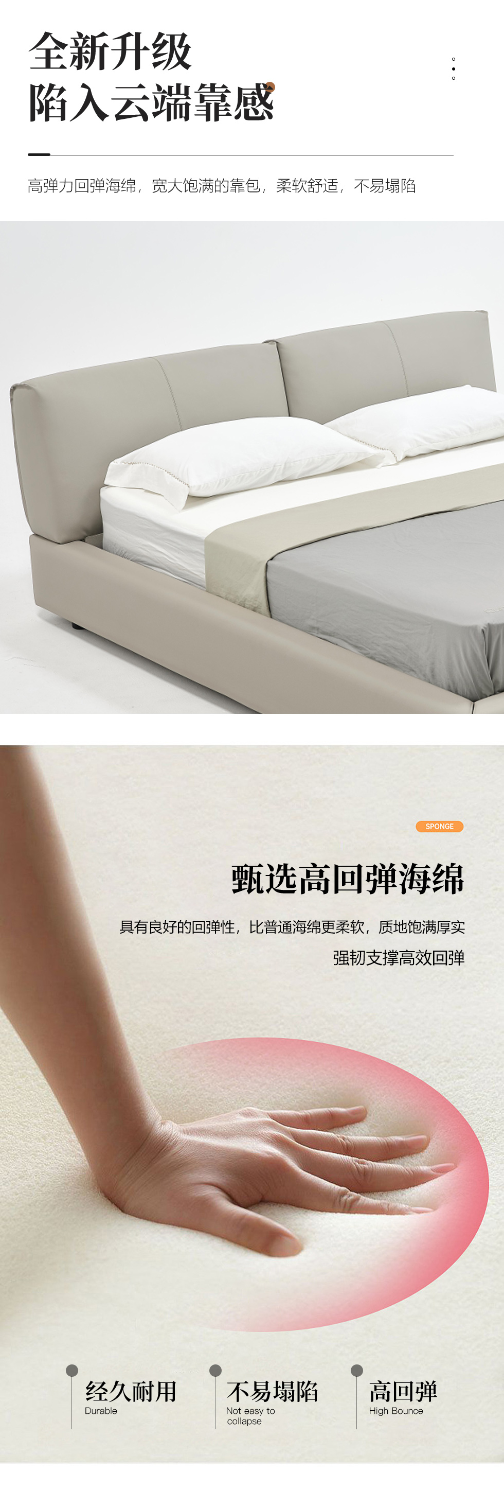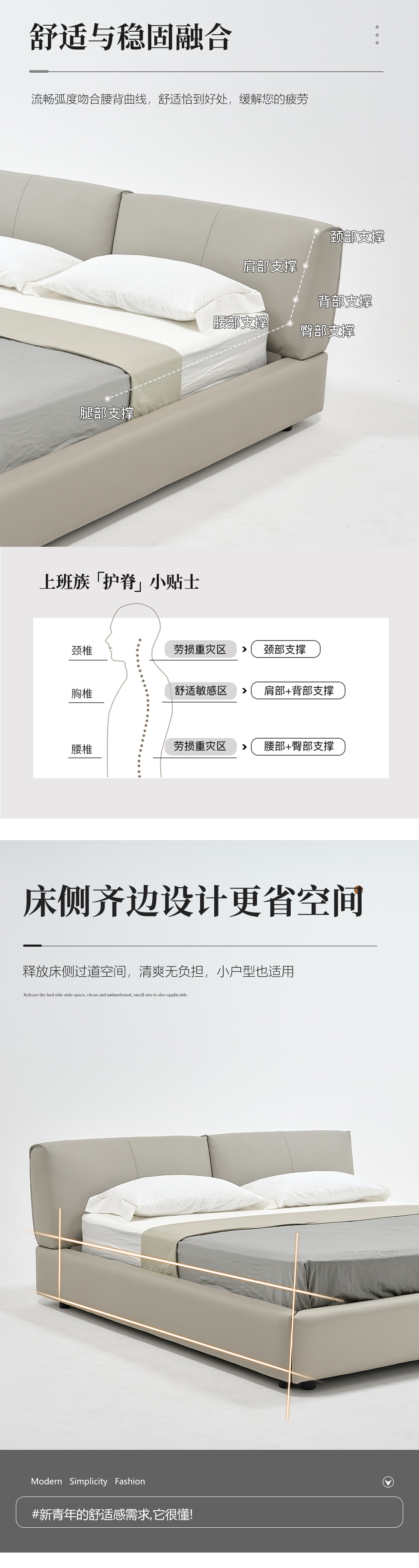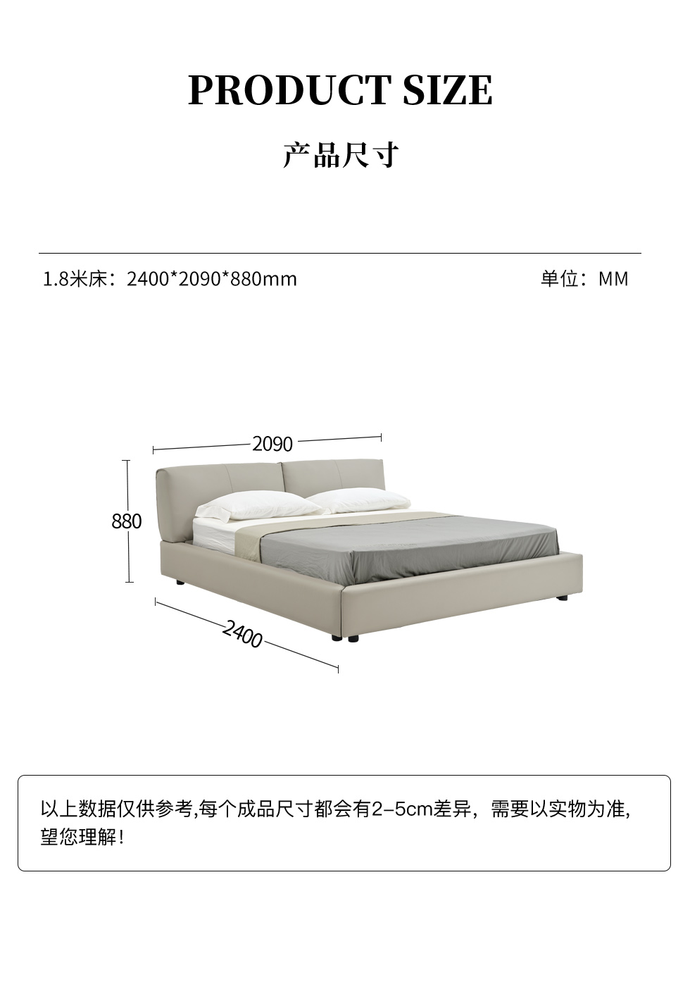 希奥 极简 俄罗斯进口松木+接触面真皮+PVC+多层实木板+实木排骨架 浅灰色1.8米皮床