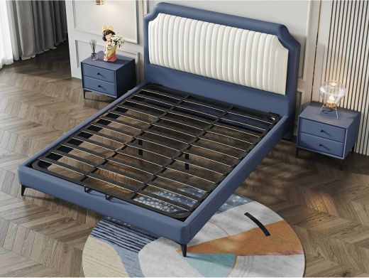 A系优选 现代简约 仿真皮+多层实木板内框+普通排骨架 蓝+白色 1.8米齐边床+2床头柜(价格不含高箱,如需定制请咨询客服)