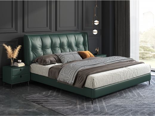 A系优选 现代简约 仿真皮+板木结构+普通排骨架 孔雀绿 1.8M齐边床+2床头柜(价格不含高箱,如需定制请咨询客服)