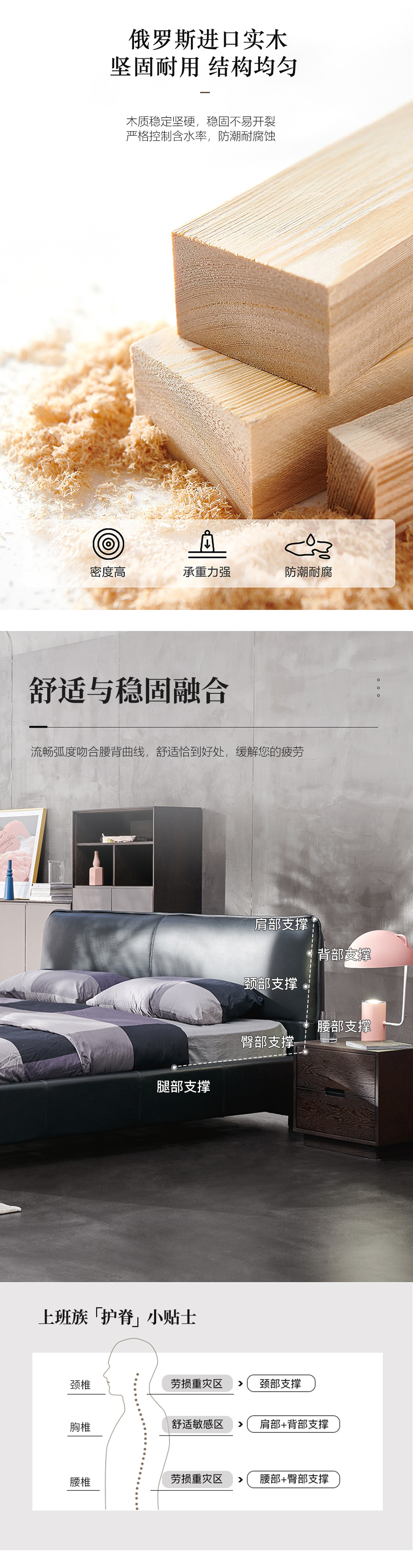 洛萨 现代极简 俄罗斯进口木方+高回弹海绵+接触面进口头层牛皮+钢木宽排排骨架 软床