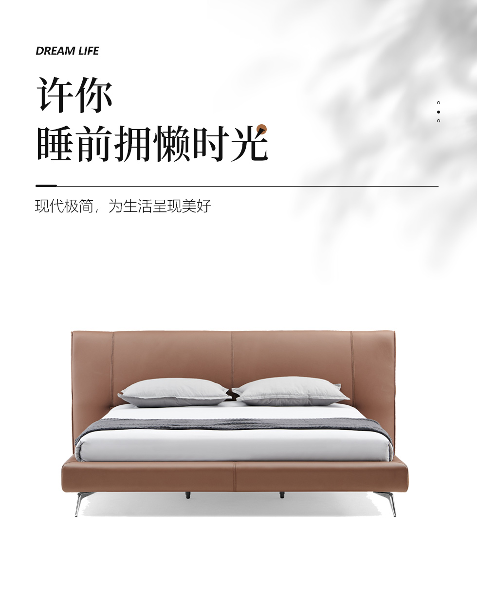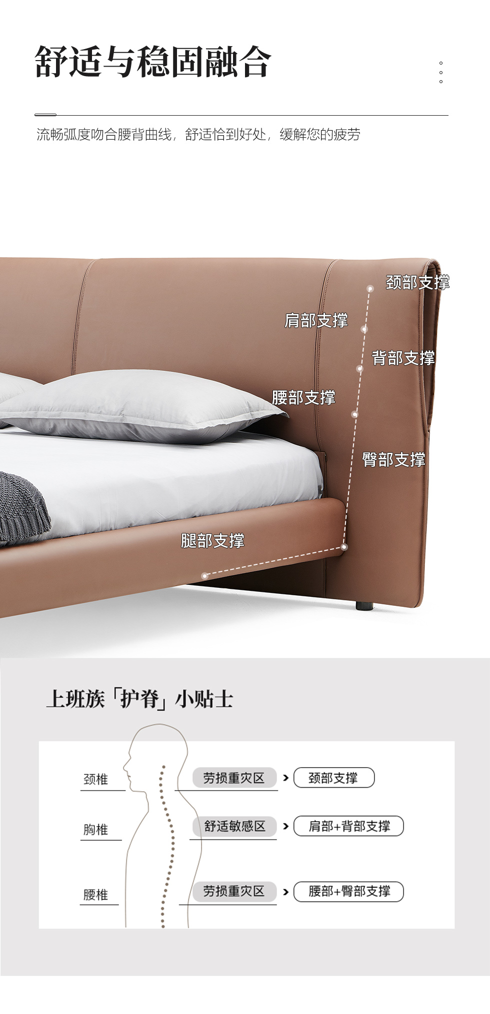 洛萨 现代极简 俄罗斯进口木方 +高回弹海绵+接触面进口头层牛皮+钢木宽排排骨架 软床¥4552