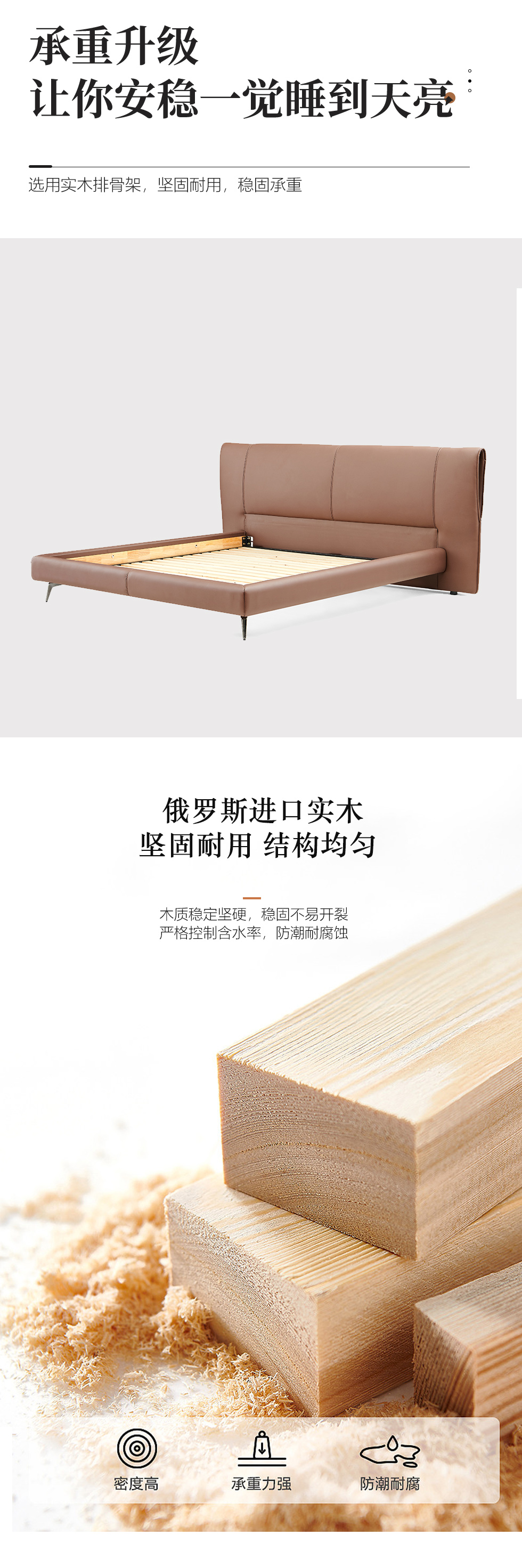 洛萨 现代极简 俄罗斯进口木方+高回弹海绵+接触面进口头层牛皮+钢木宽排排骨架 软床