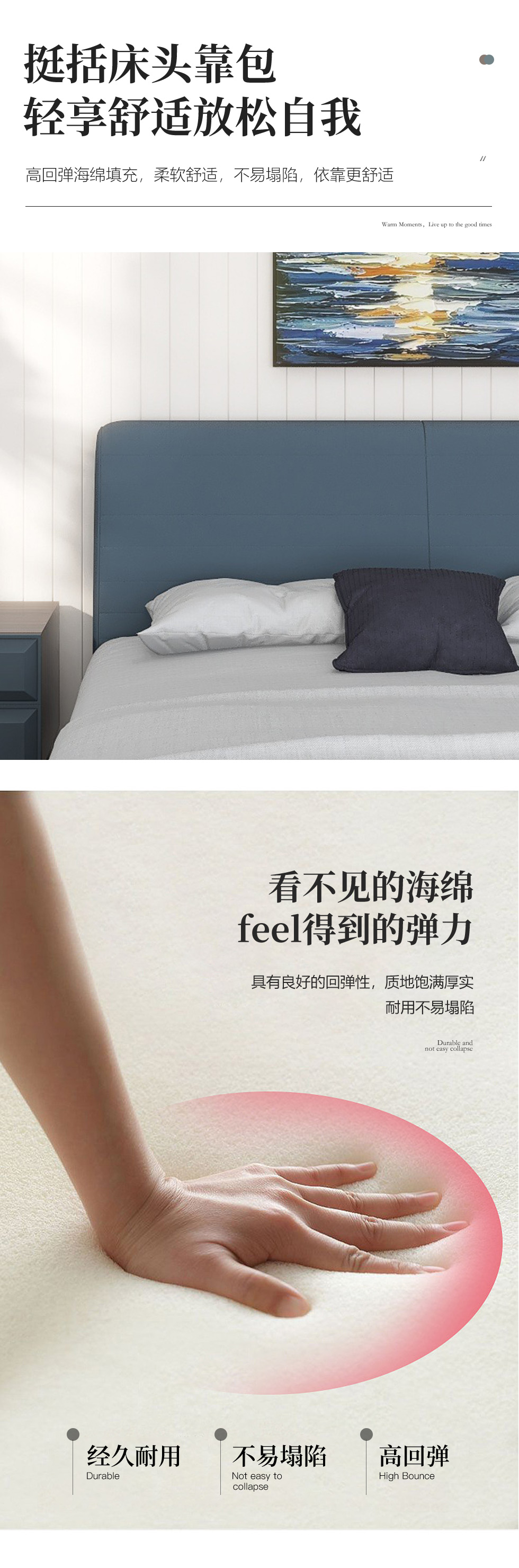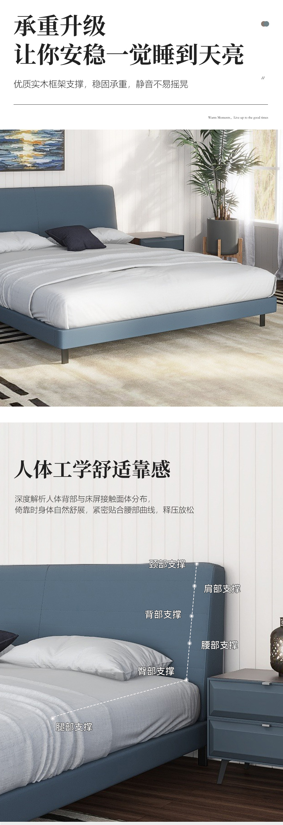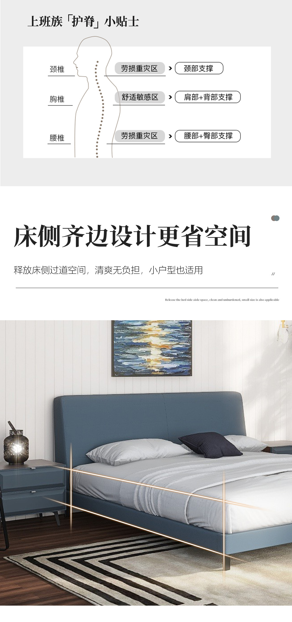 贝斯solo 设计师 网红 极简 接触面真皮 俄罗斯进口落叶松 优质羽绒靠包 静音床板 小象耳朵床 1.8米床