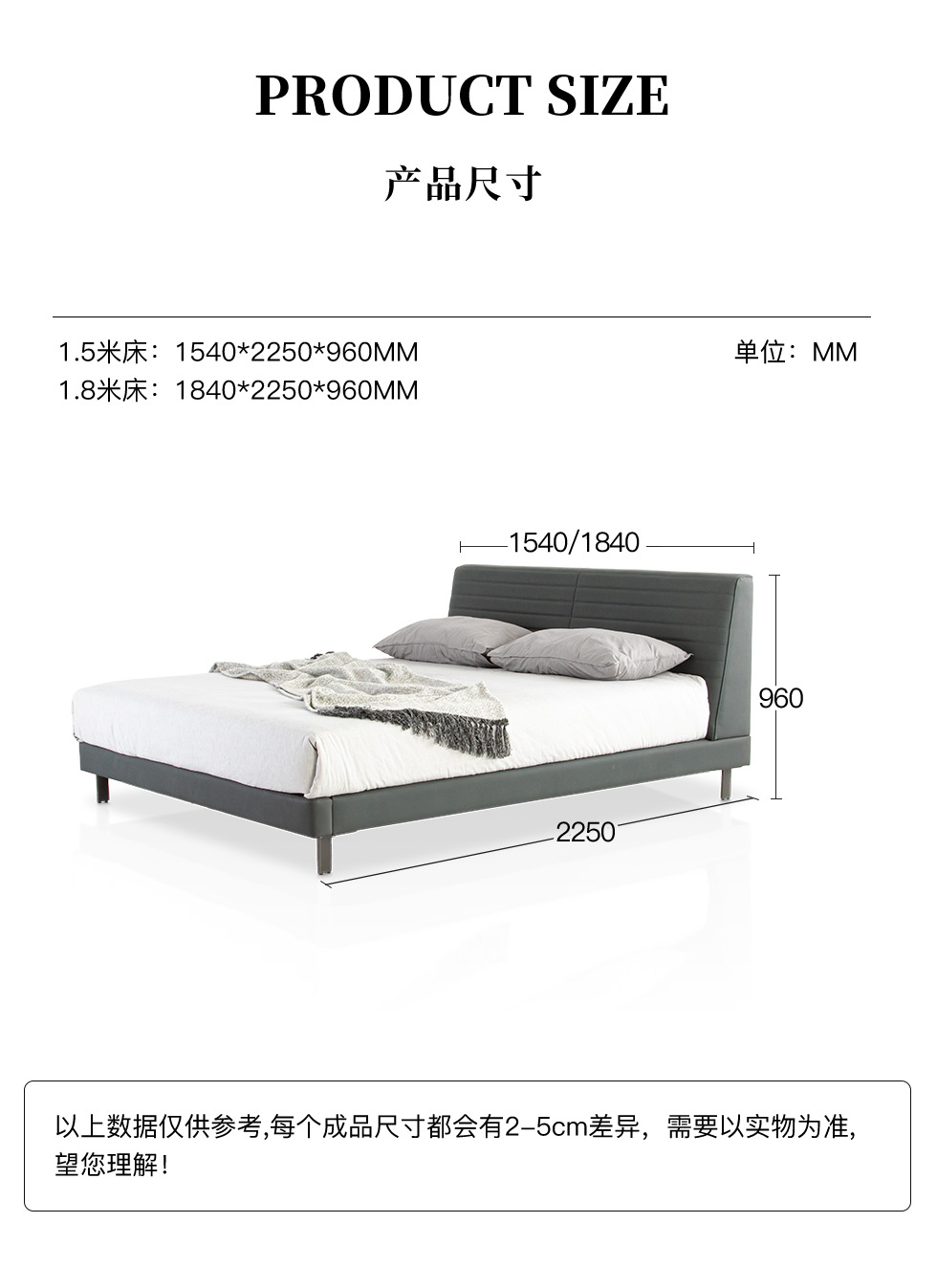 CBD家居 极简 接触面真皮+非接触面仿皮+东亚海绵+云杉木实木主框架+分体卷帘式排骨条 TE97镍灰 1.8米床架¥15839