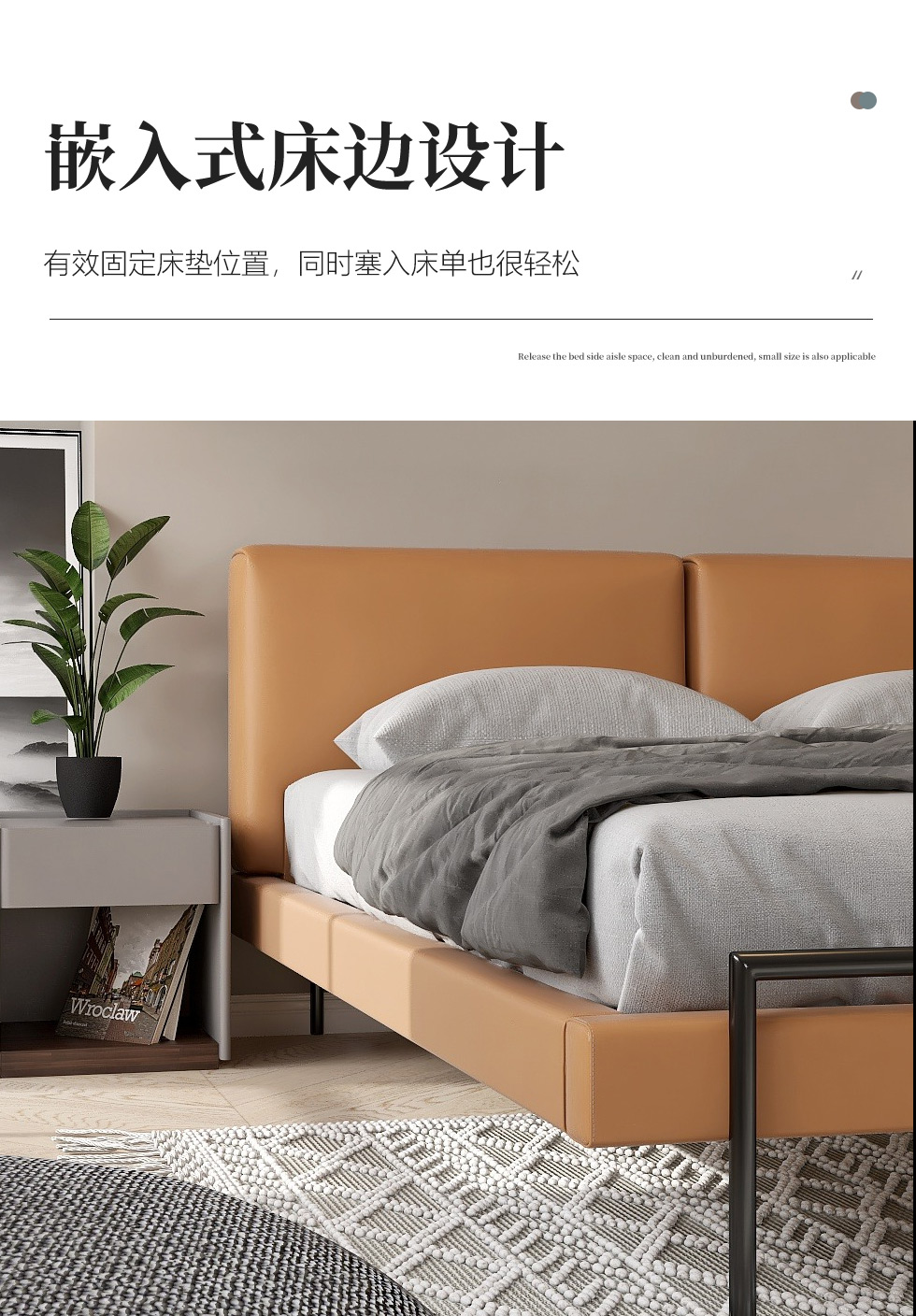 缔造 极简 接触面头层纳帕真皮+实木排骨架+羽丝棉+高密度海棉+碳素钢脚 1.8米皮床
