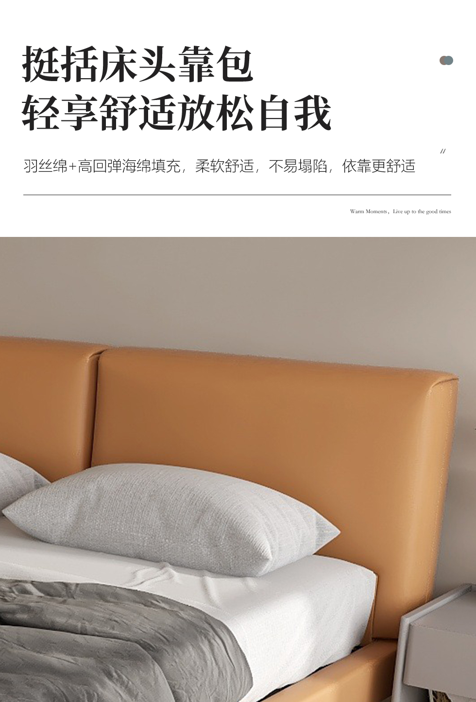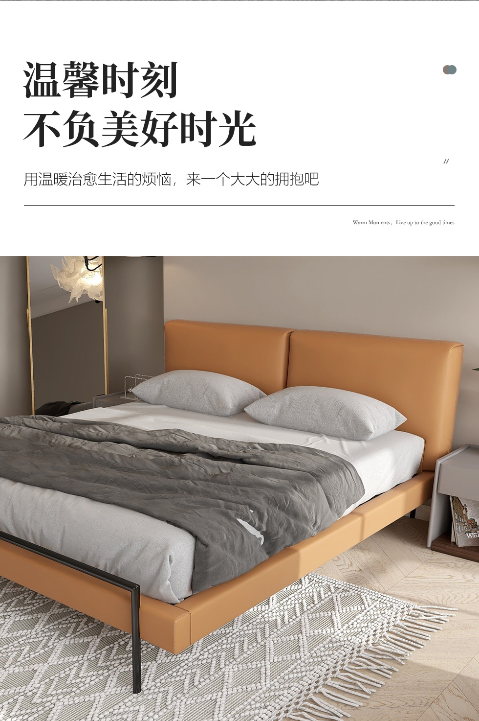 洛萨 现代极简 俄罗斯进口木方+高回弹海绵+接触面进口头层牛皮+钢木宽排排骨架 软床¥7318