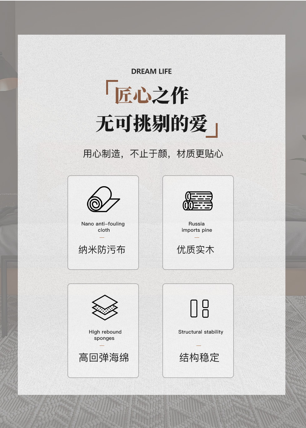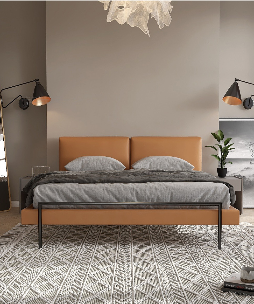 贝斯solo 设计师 网红 极简 接触面真皮 俄罗斯进口落叶松 优质羽绒靠包 静音床板 小象耳朵床 1.8米床