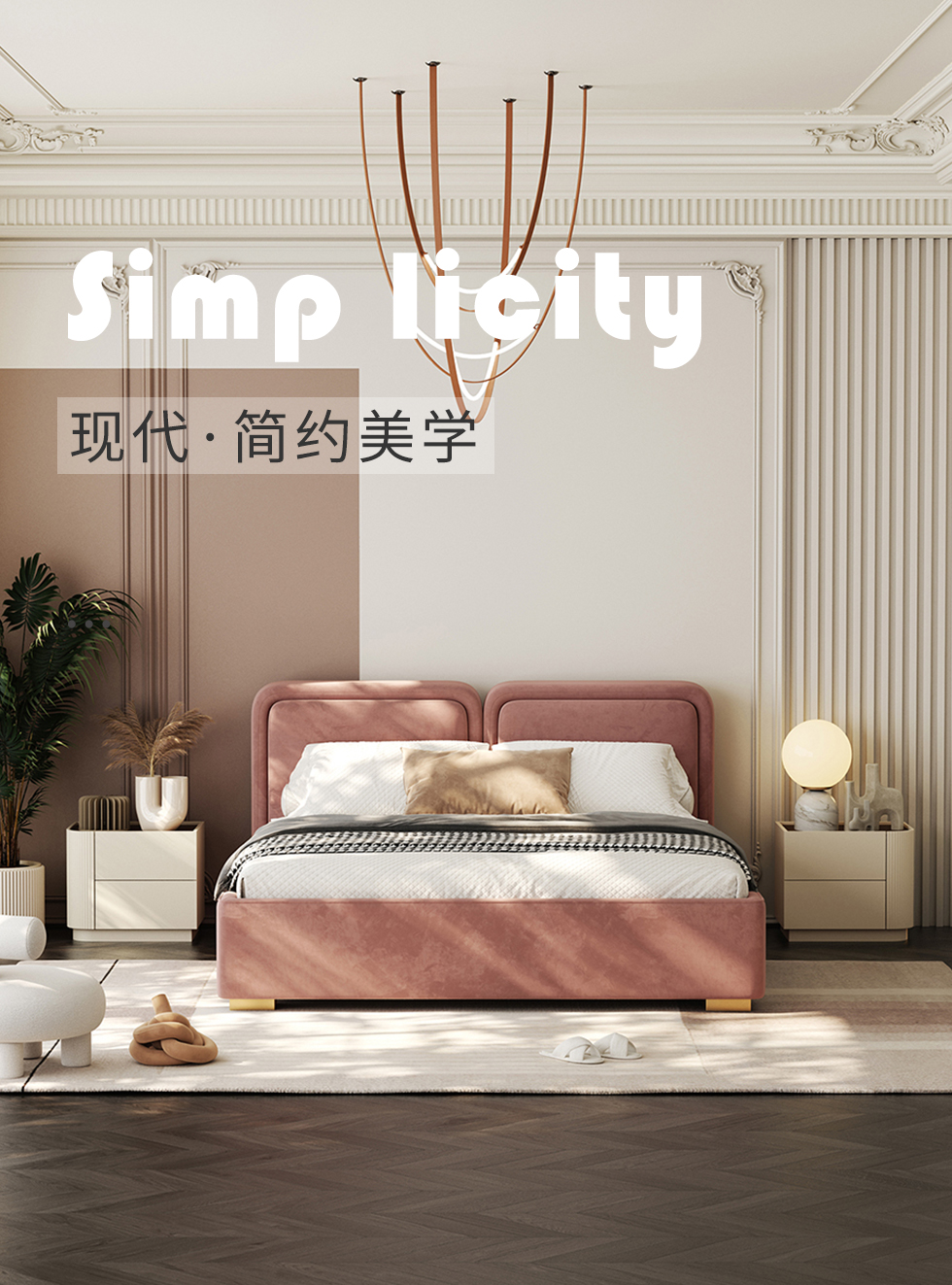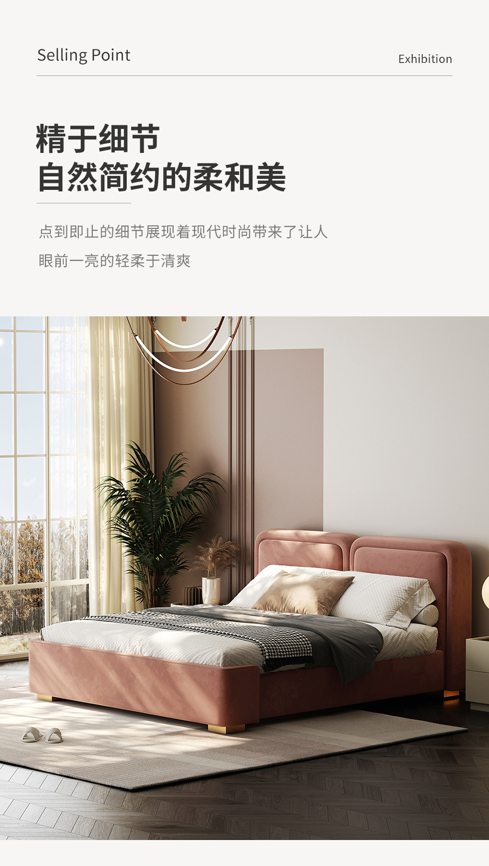 云端 奶油风 超纤皮+钢木排骨架 米白色+粉色 1.8床¥6065