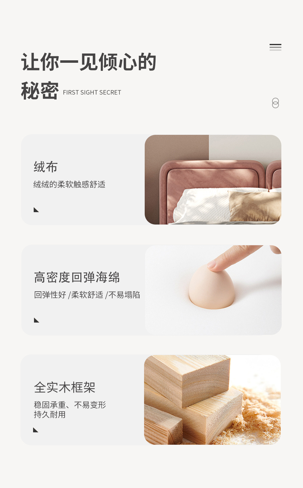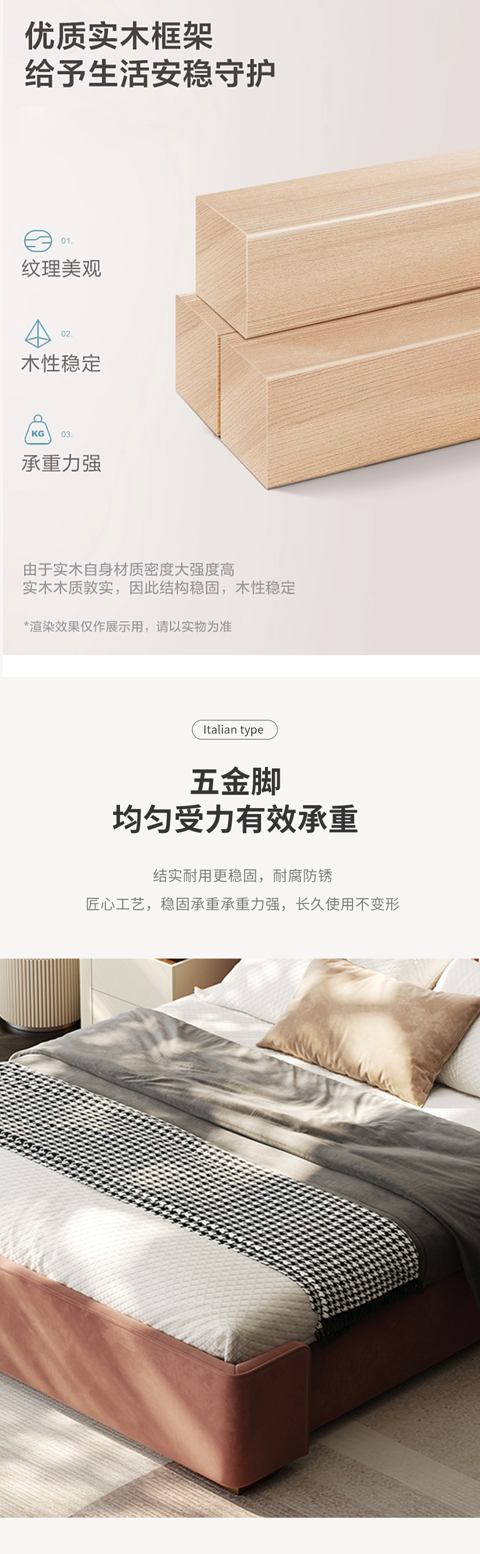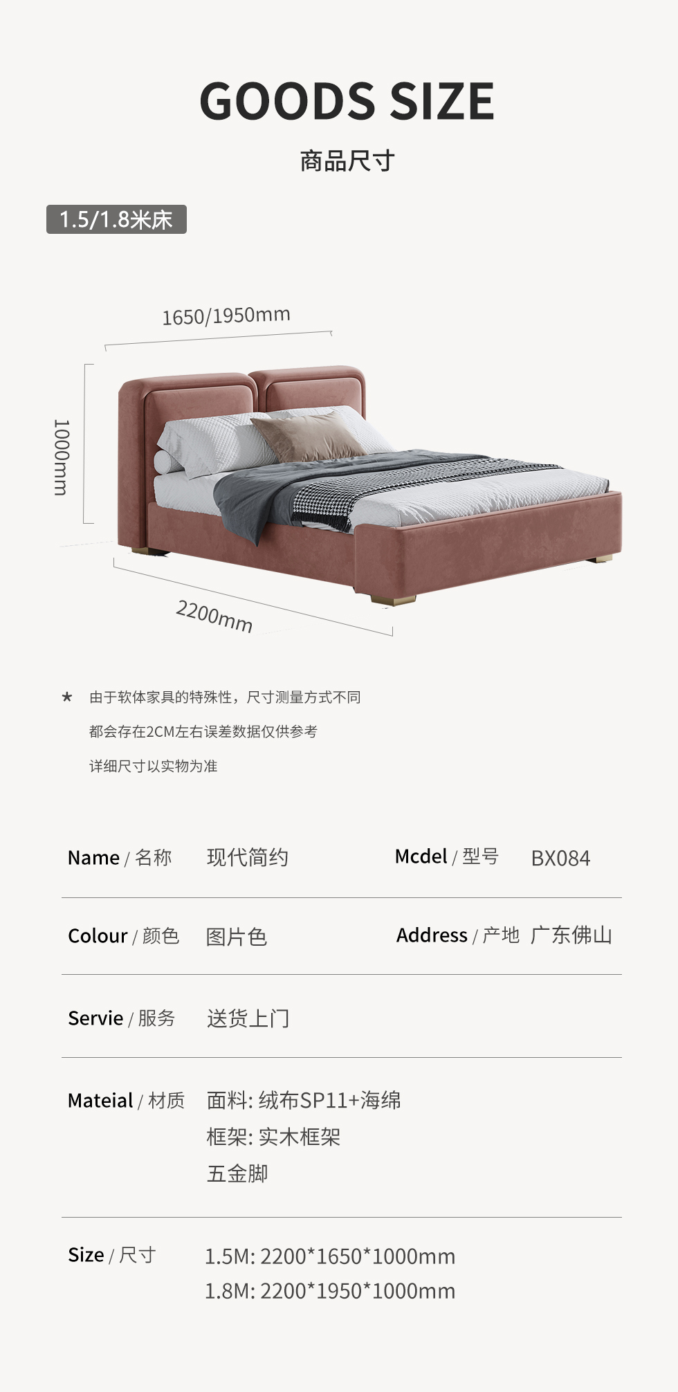 鹿屿 奶油风 绒布SP11- 系列+实木框架+海绵+绒布+五金脚 1.5布米床