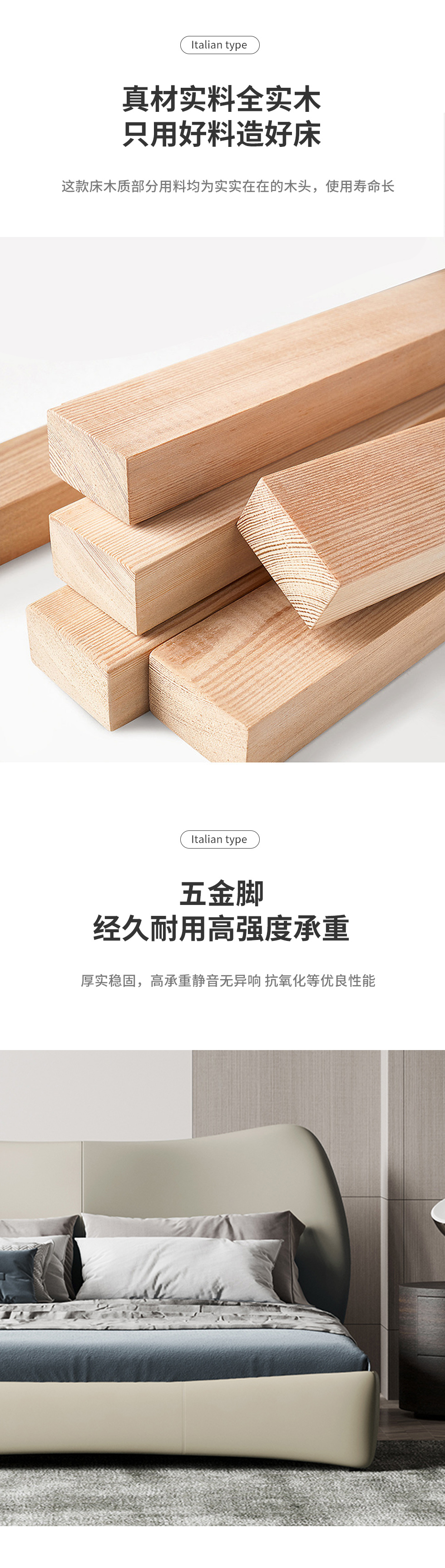 Minttu明途 极简 实木框架+海绵+靠包羽绒+生态真皮+仿皮+五金脚 皮床 1.8米
