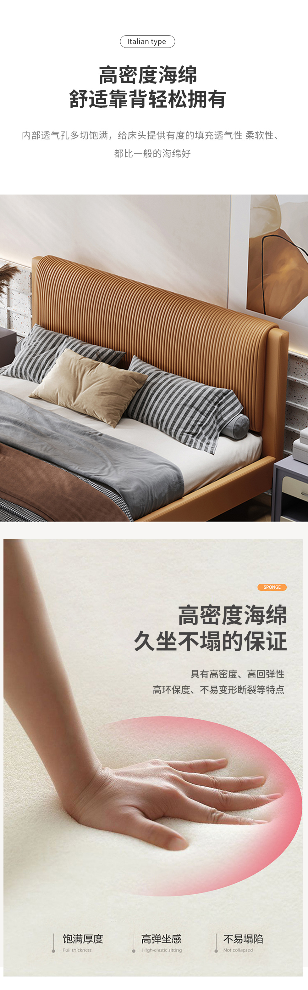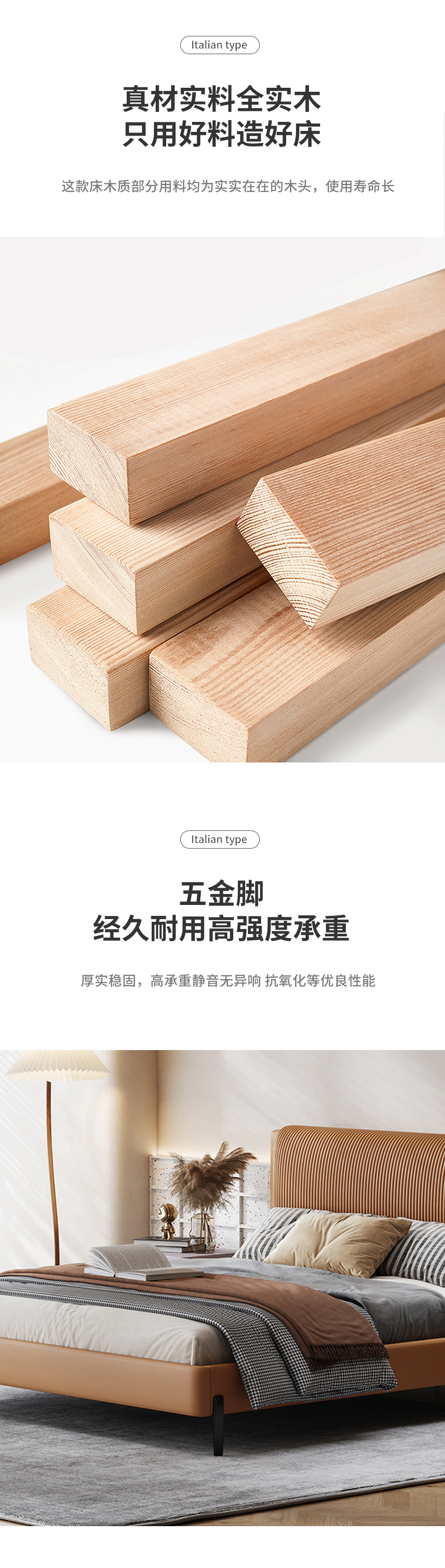 Minttu明途 极简 实木框架+海绵+靠包羽绒+生态真皮+仿皮+五金脚 皮床 1.8米