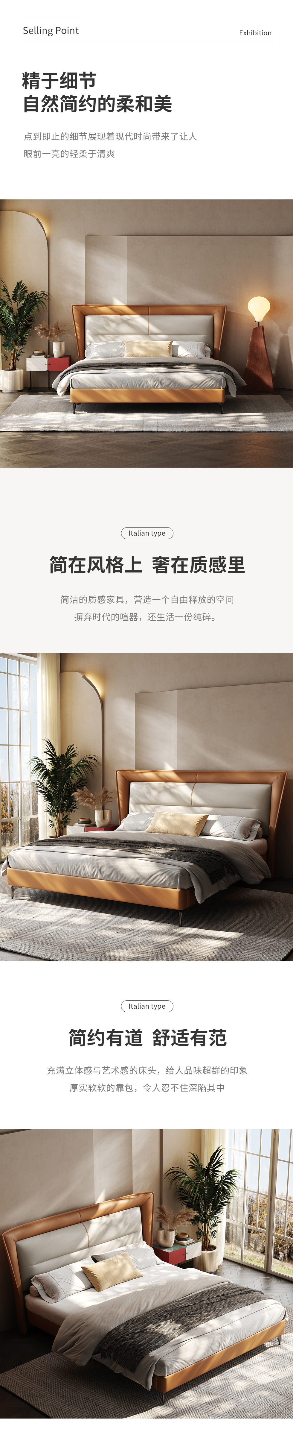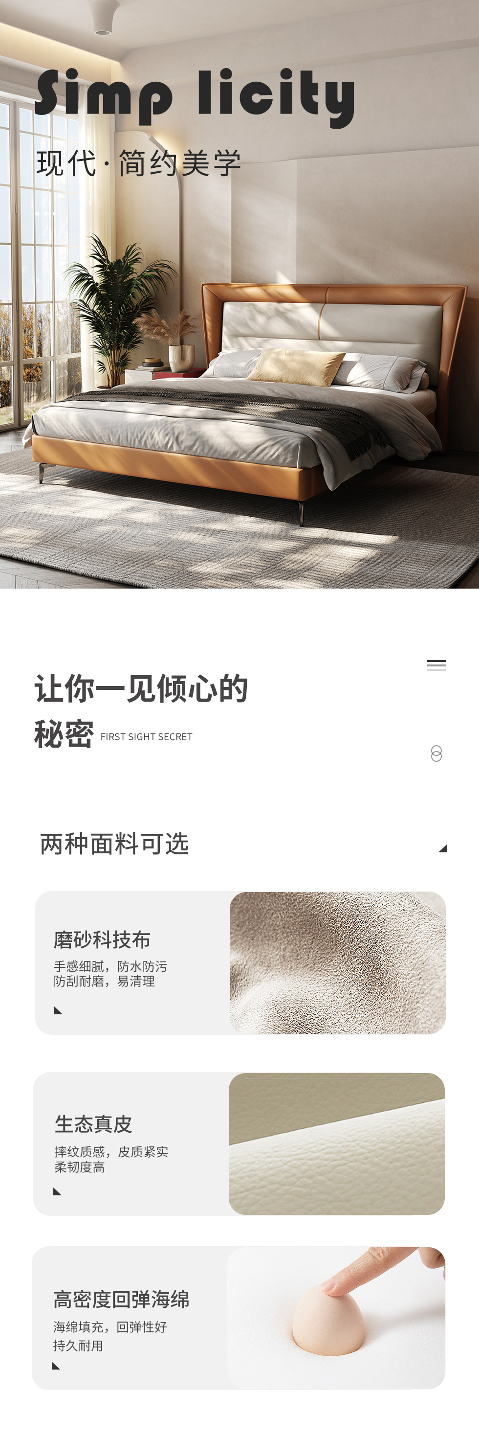 Minttu明途 极简 实木框架+海绵+生态真皮+仿皮+五金脚 皮床 1.8米| 商品详情 | 规格参数 | 评价(0) | 购买咨询() | 产品实拍图 |
