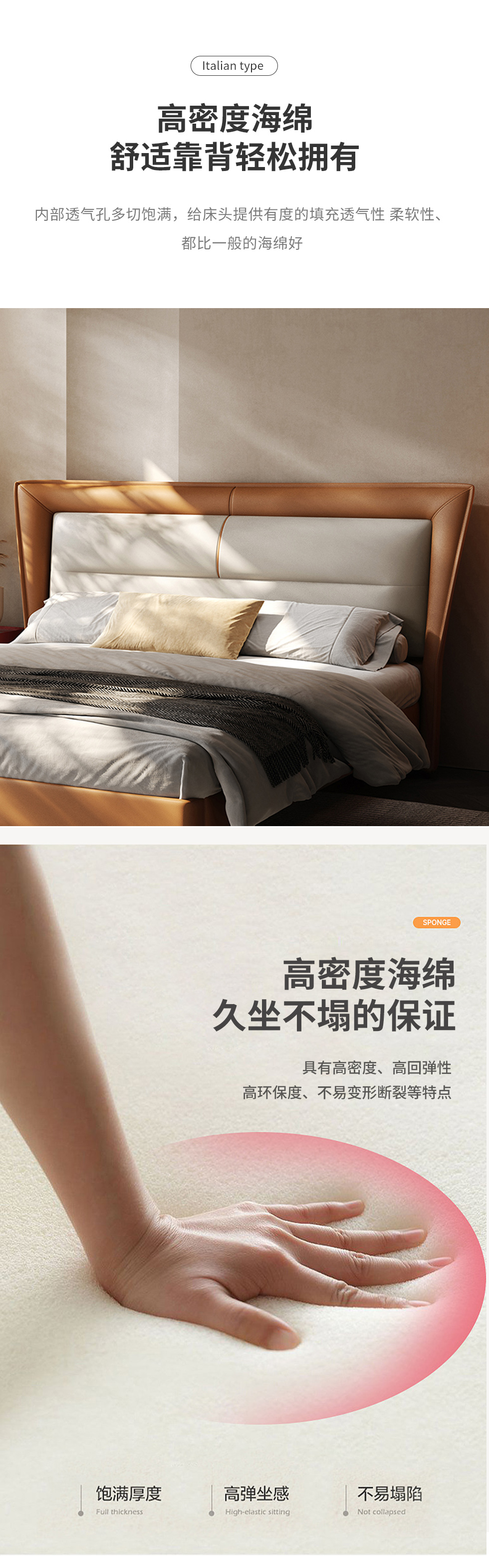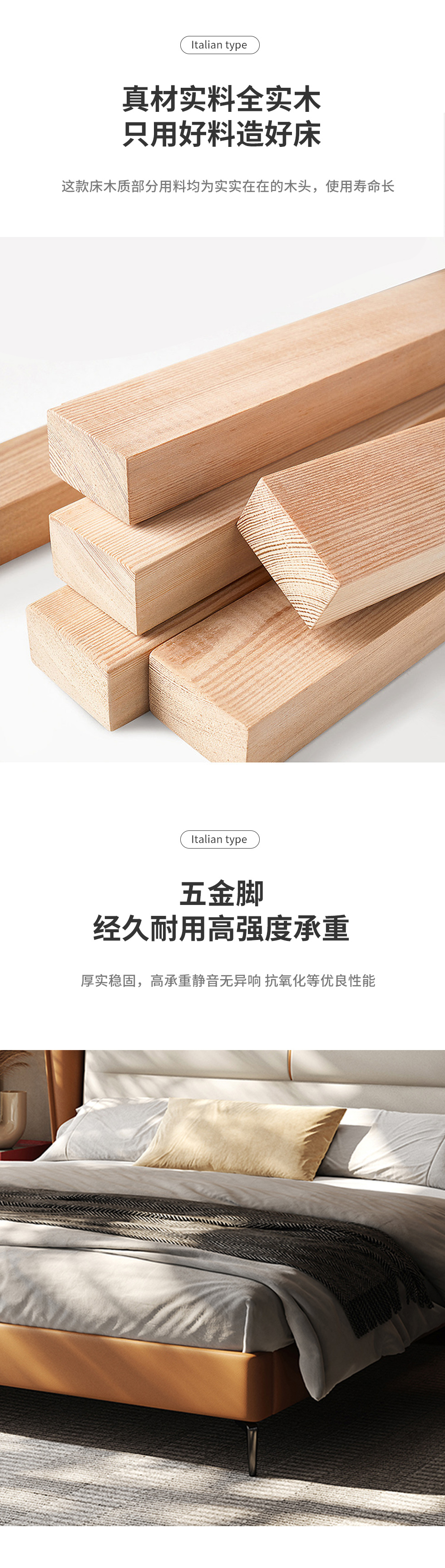 Minttu明途 极简 实木框架+海绵+靠包羽绒+生态真皮+仿皮+五金脚 皮床 1.8米