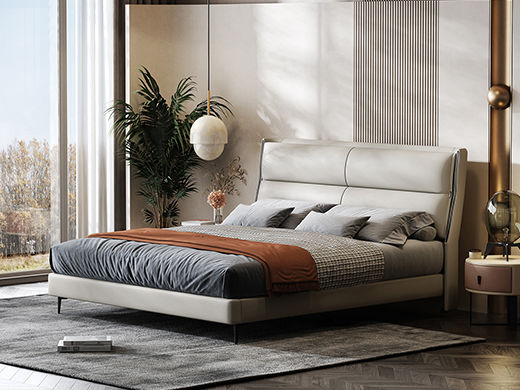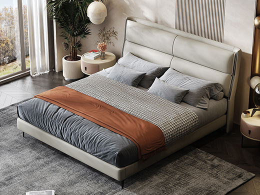 Minttu明途 极简 实木框架+海绵+靠包羽绒+生态真皮+仿皮+五金脚 皮床 1.8米¥5326