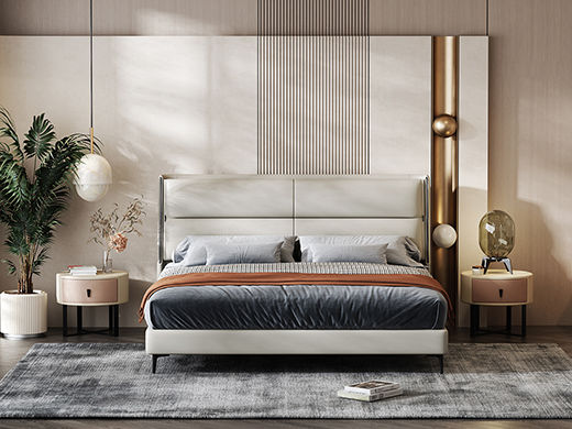 Minttu明途 极简 实木框架+海绵+生态真皮+仿皮+五金脚 皮床 1.8米+两个床头柜¥5480