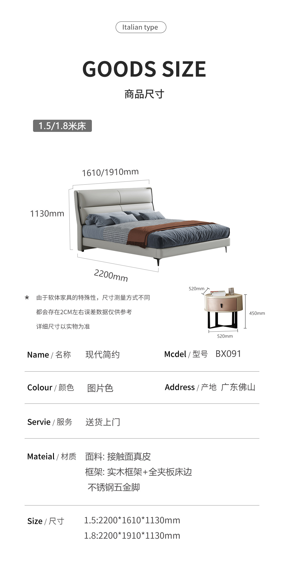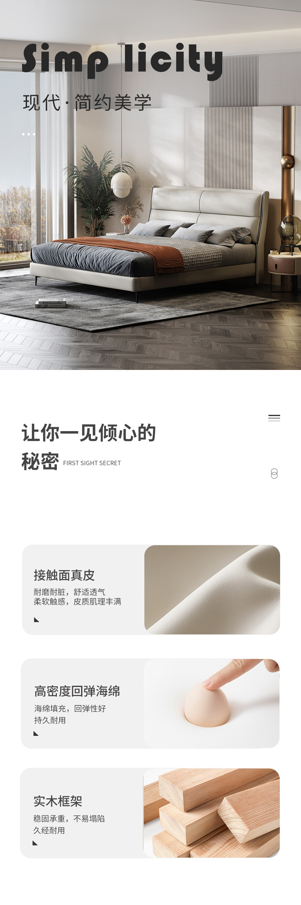 Minttu明途 极简 实木框架+海绵+生态真皮+仿皮+五金脚 皮床 1.8米| 商品详情 | 规格参数 | 评价(0) | 购买咨询() | 产品实拍图 |