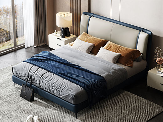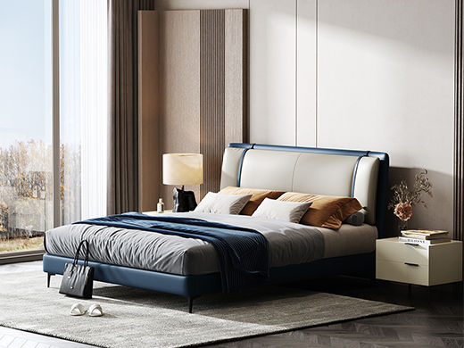 Minttu明途 极简 实木框架+海绵+靠包羽绒+生态真皮+仿皮+五金脚 皮床 1.8米¥5326