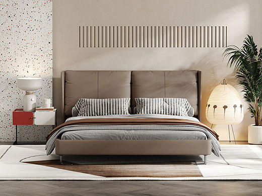 Minttu明途 极简 实木框架+海绵+生态真皮+仿皮+五金脚 皮床 1.8米¥5261