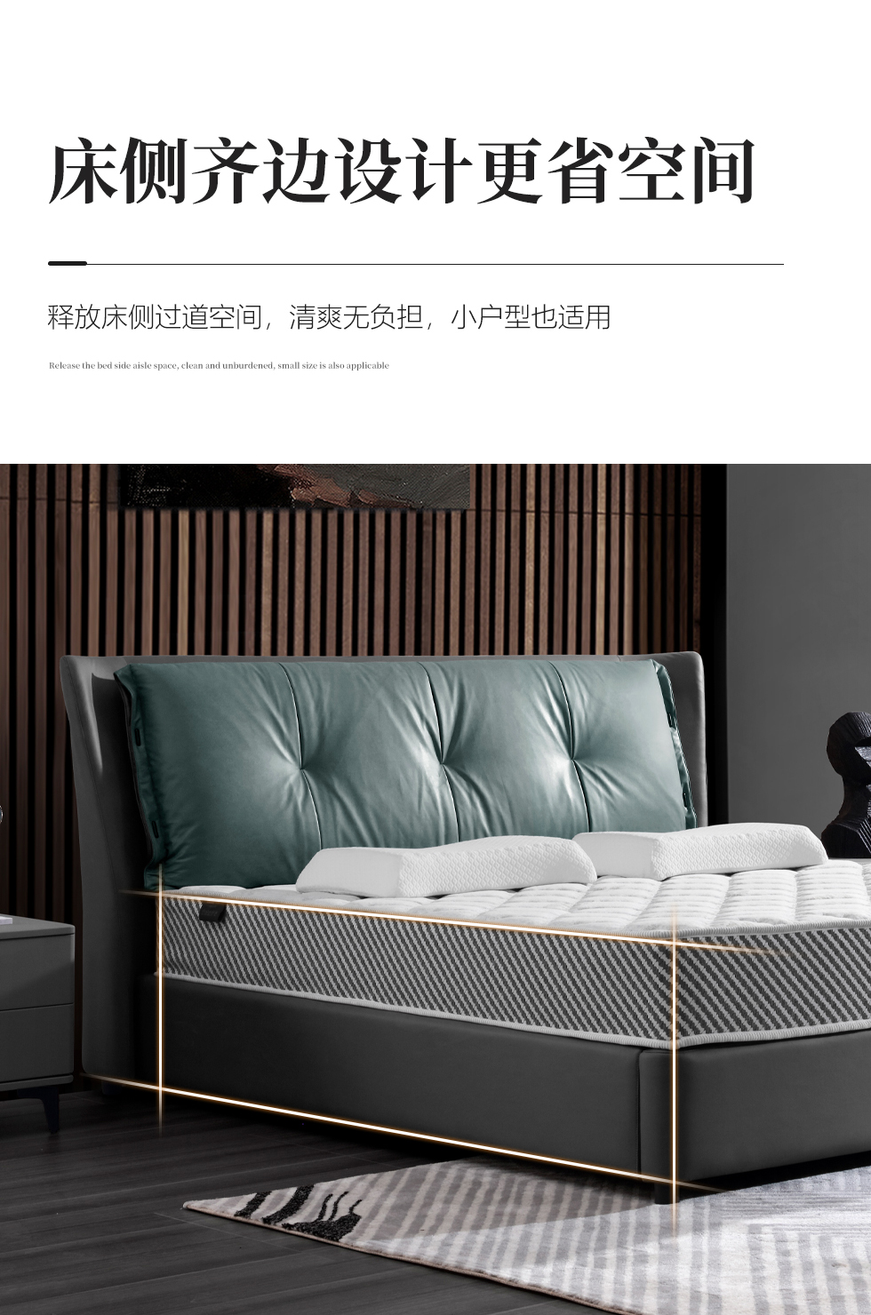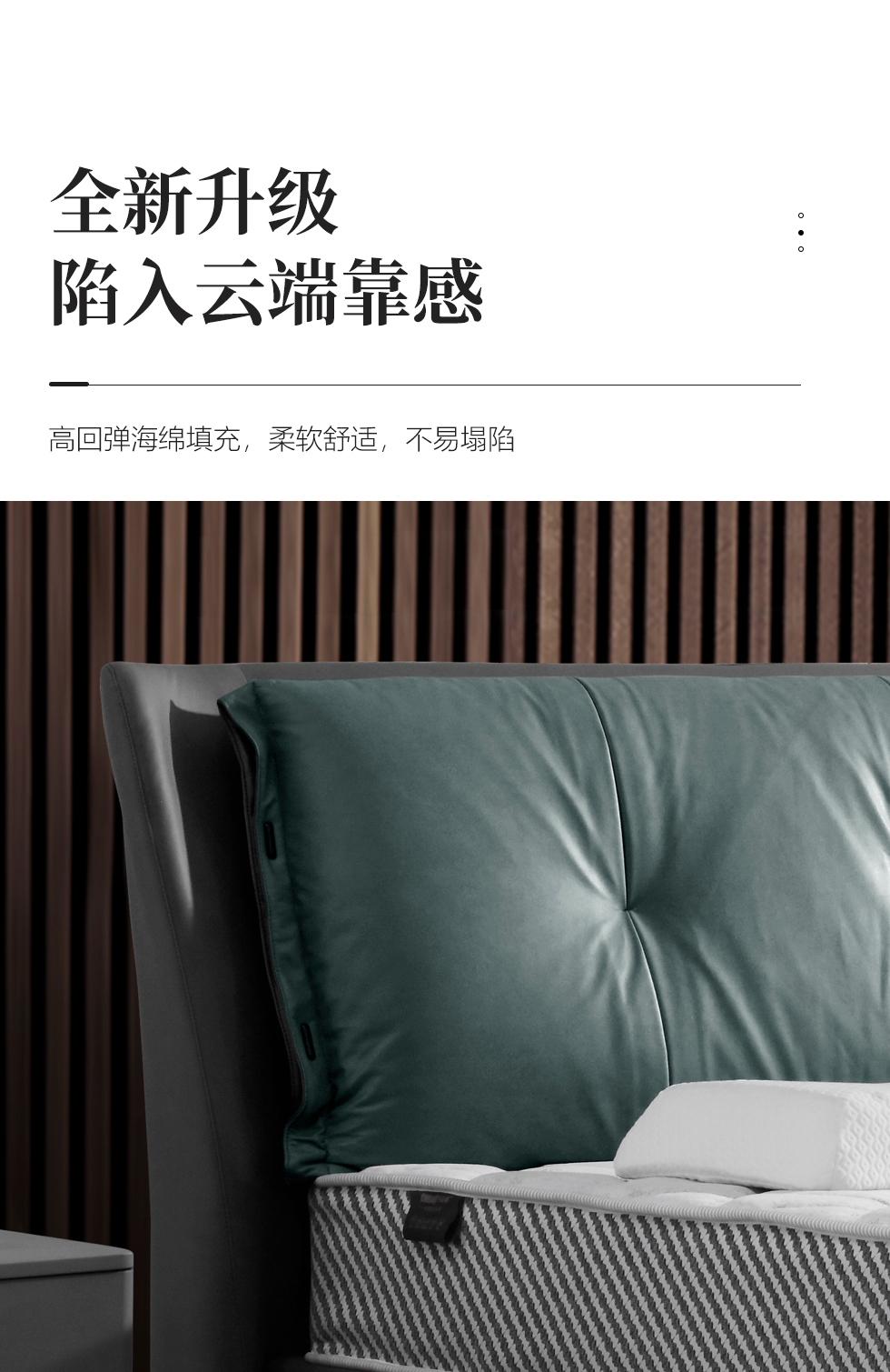 e家优选 现代简约 接触面头层牛皮 松木 实木多层板 九孔纤维棉 咖灰色 1.8米皮床¥3875