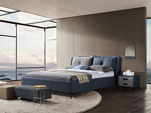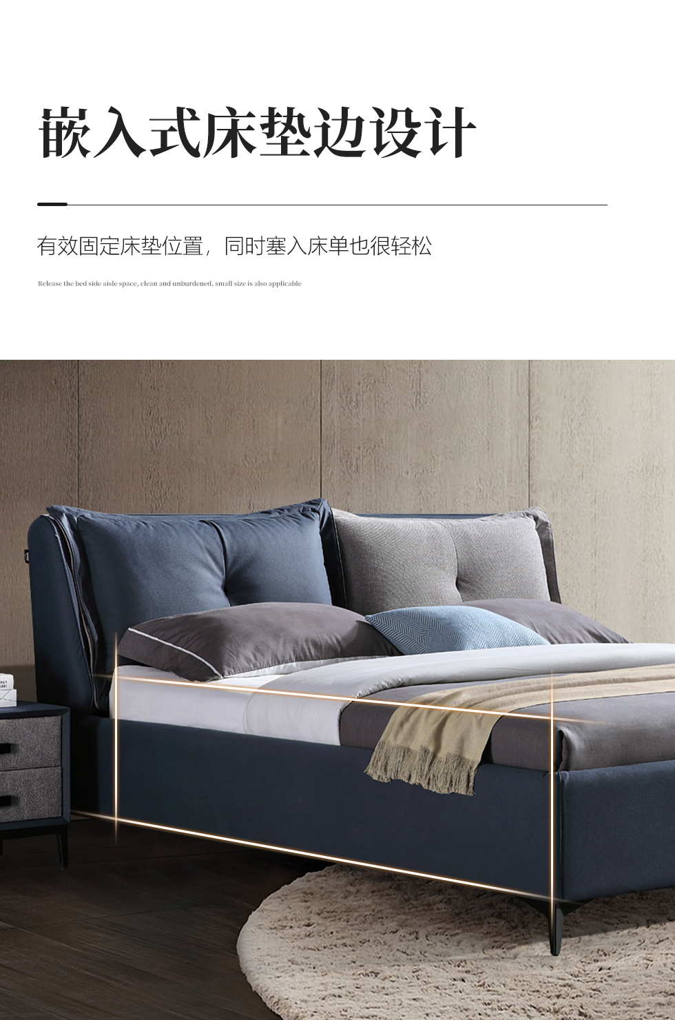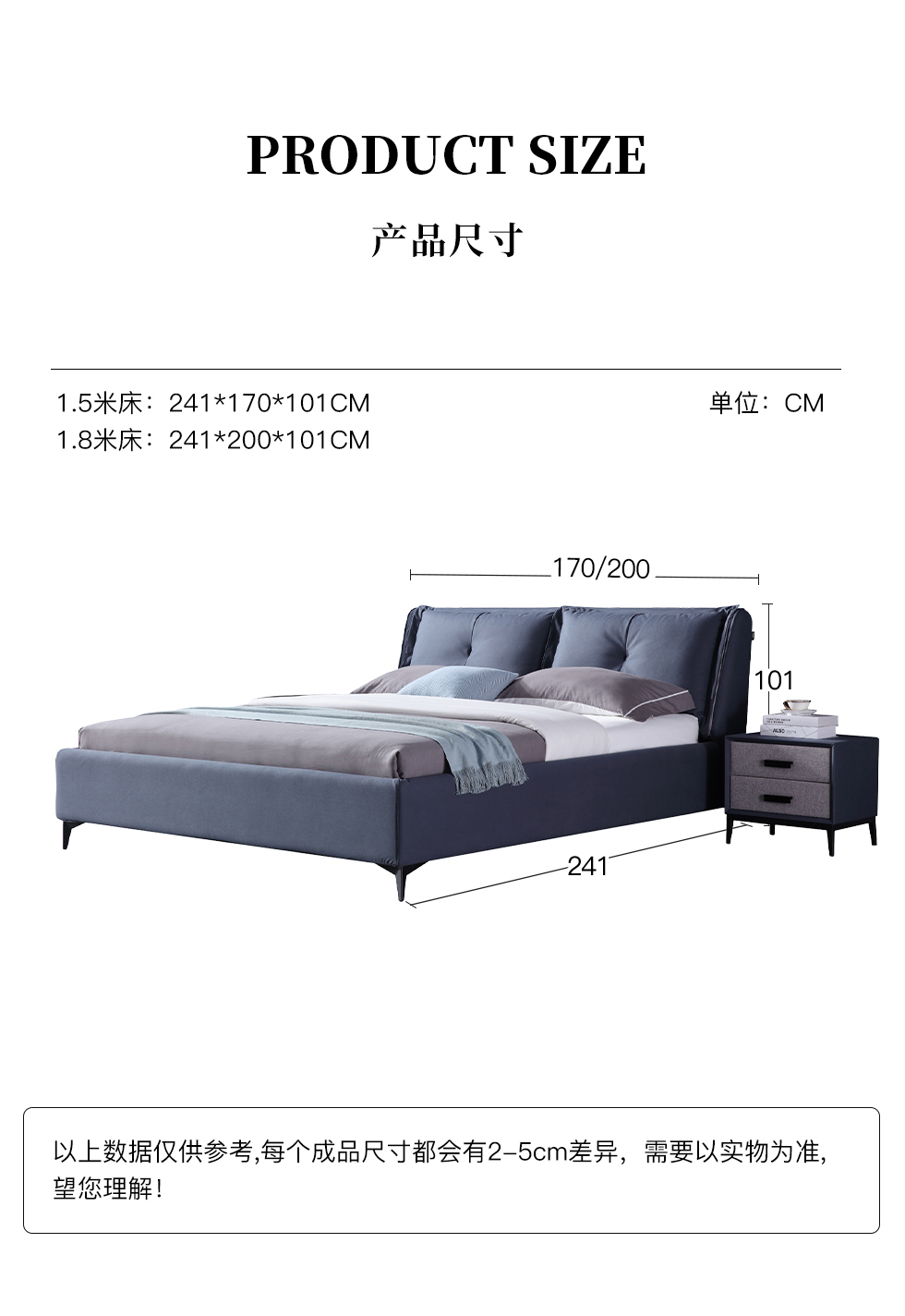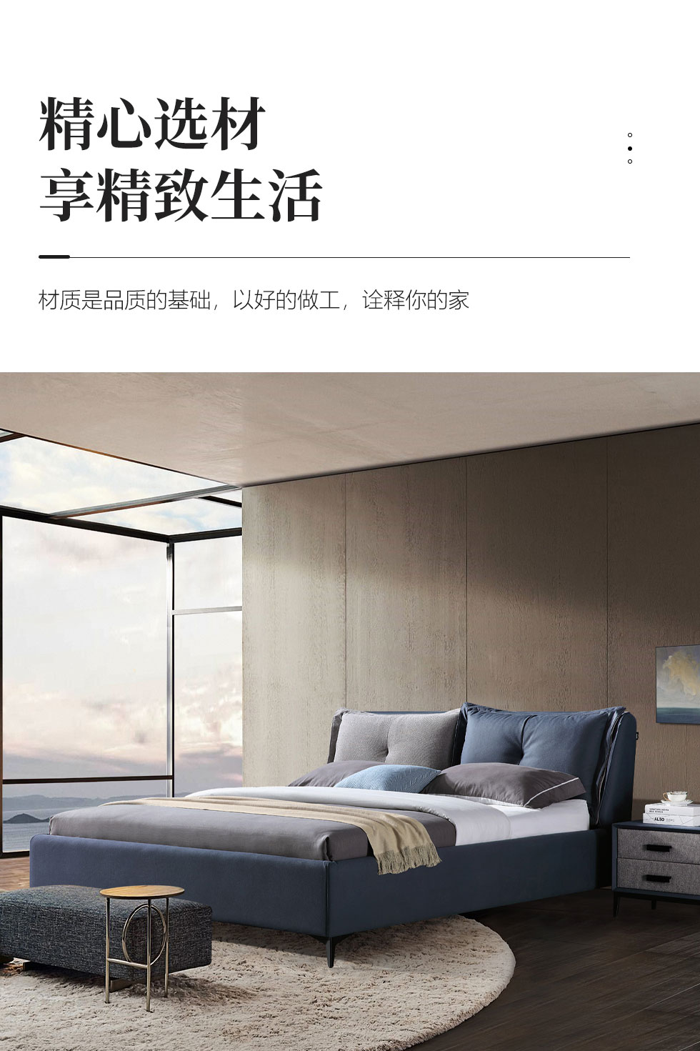 e家优选 极简 接触面头层牛皮 松木 实木多层板 高回弹海绵 银灰 加蓝色 1.8米皮床¥4443