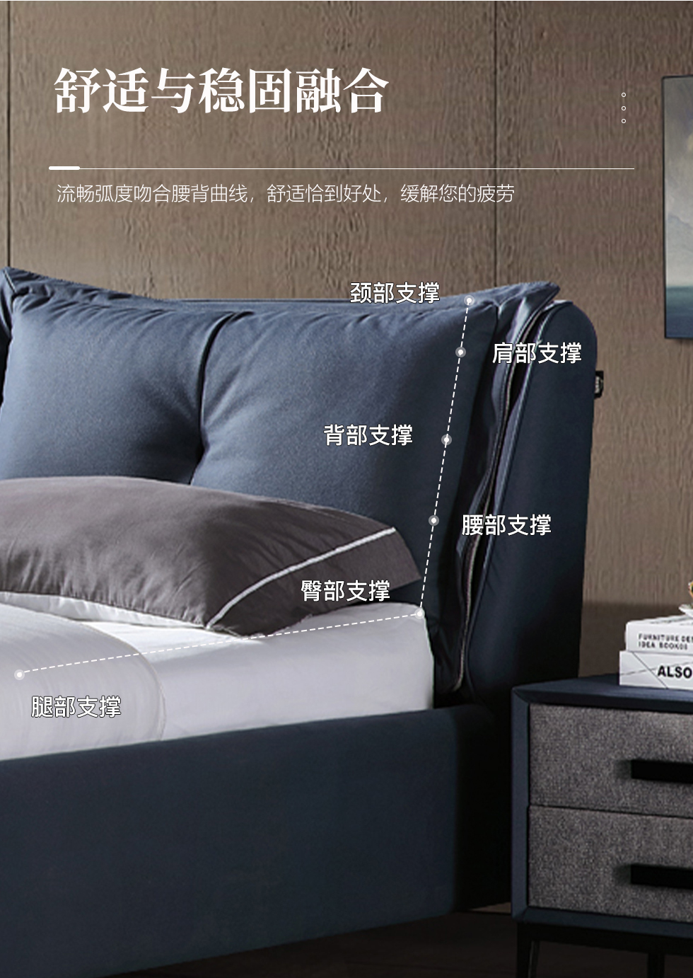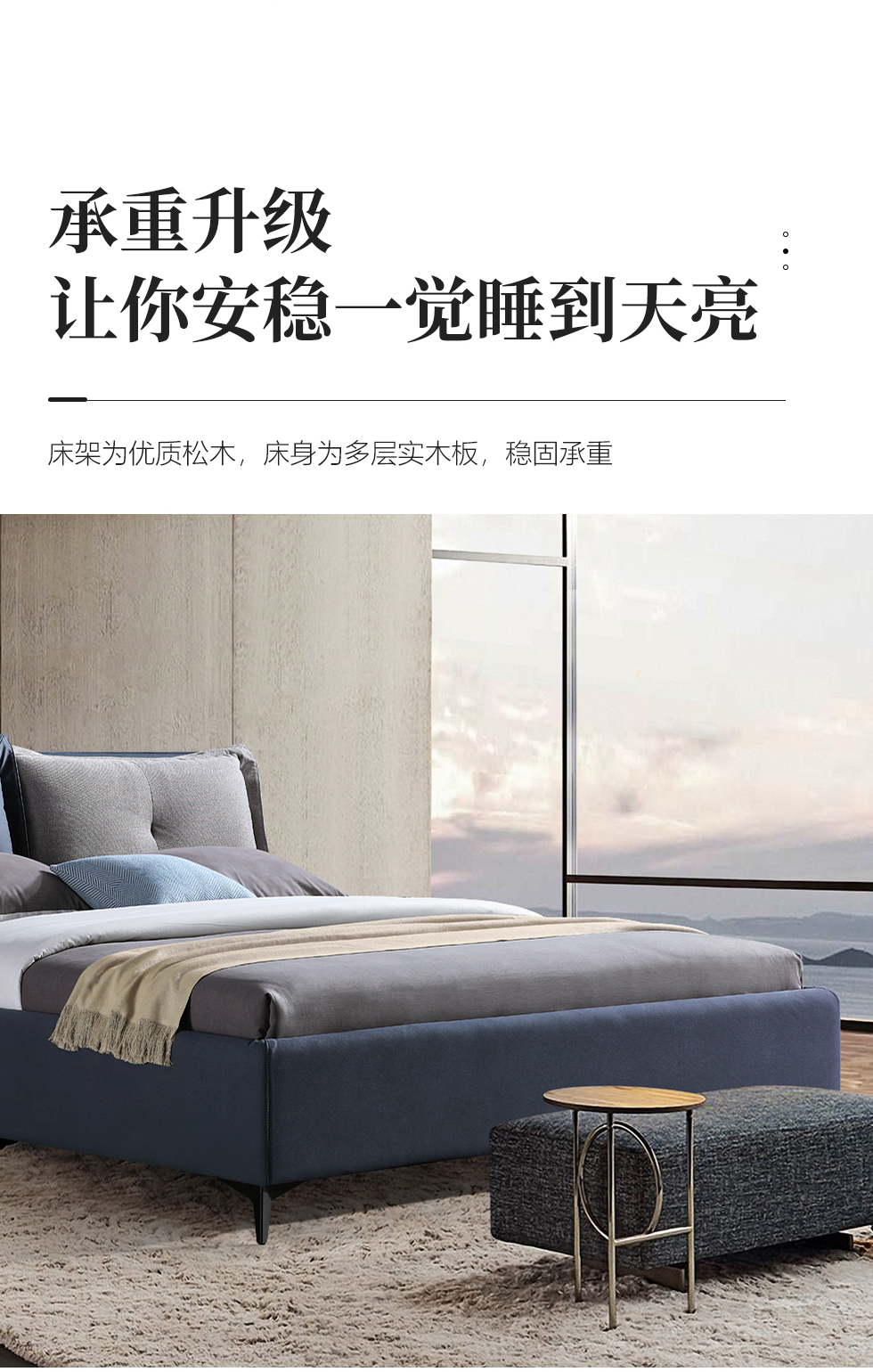e家优选 极简 科技布 松木 实木多层板 九孔纤维棉 可拆洗 蓝灰色 1.5米布床