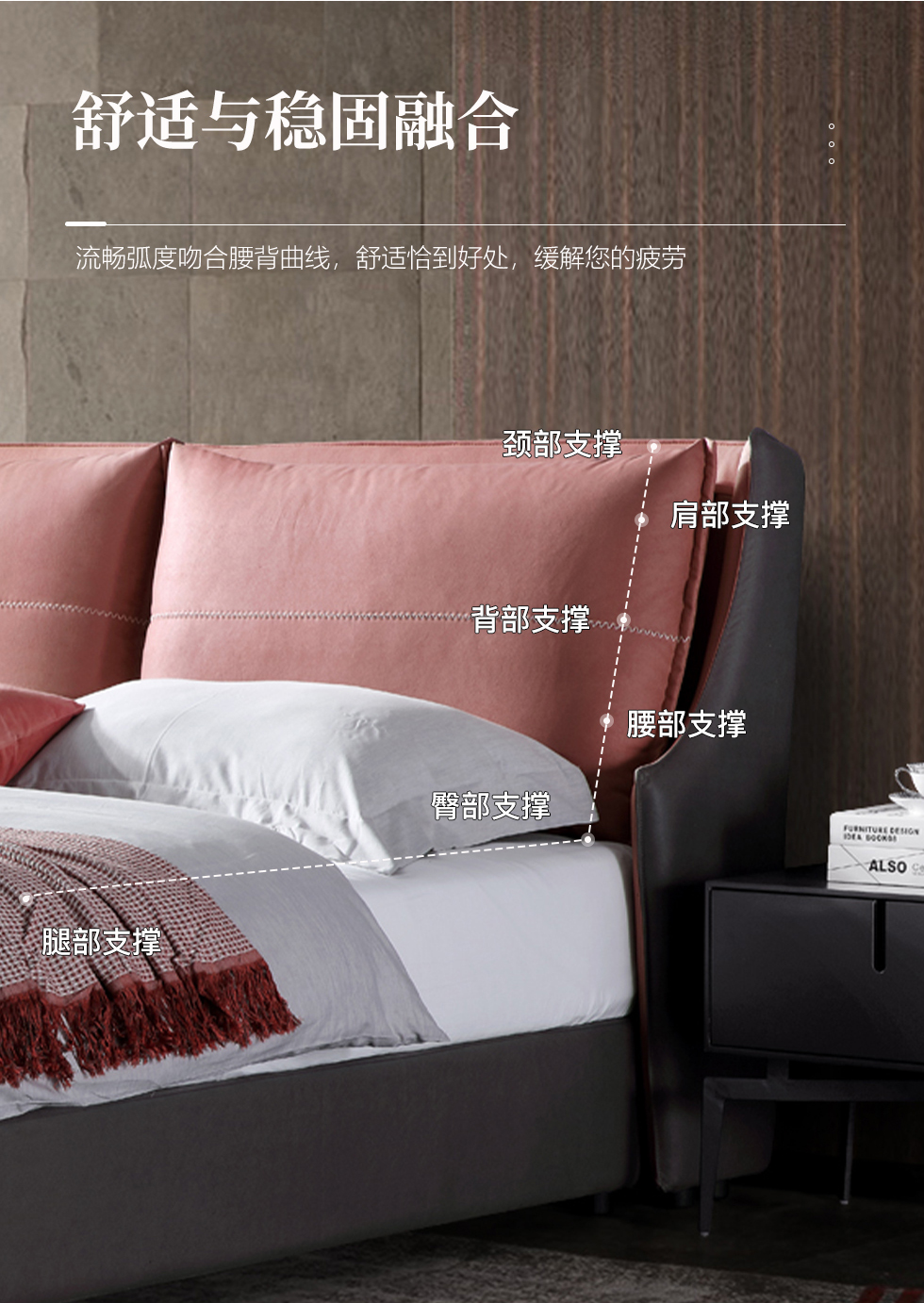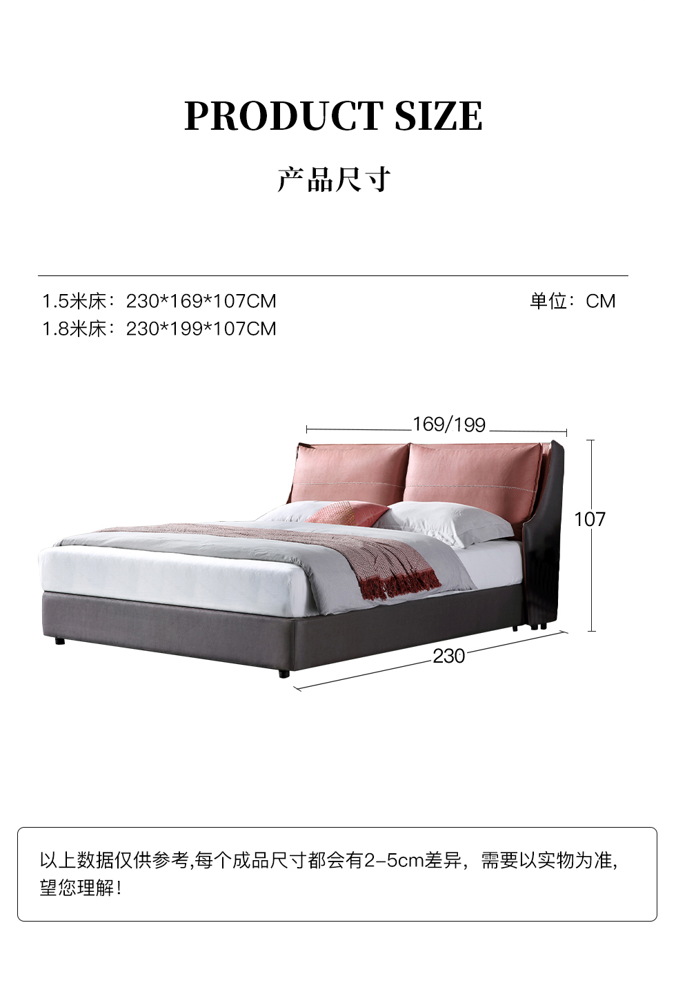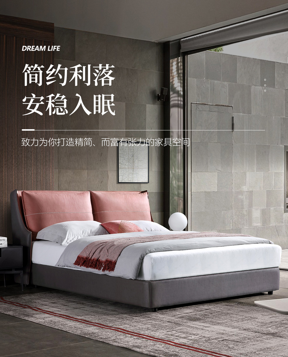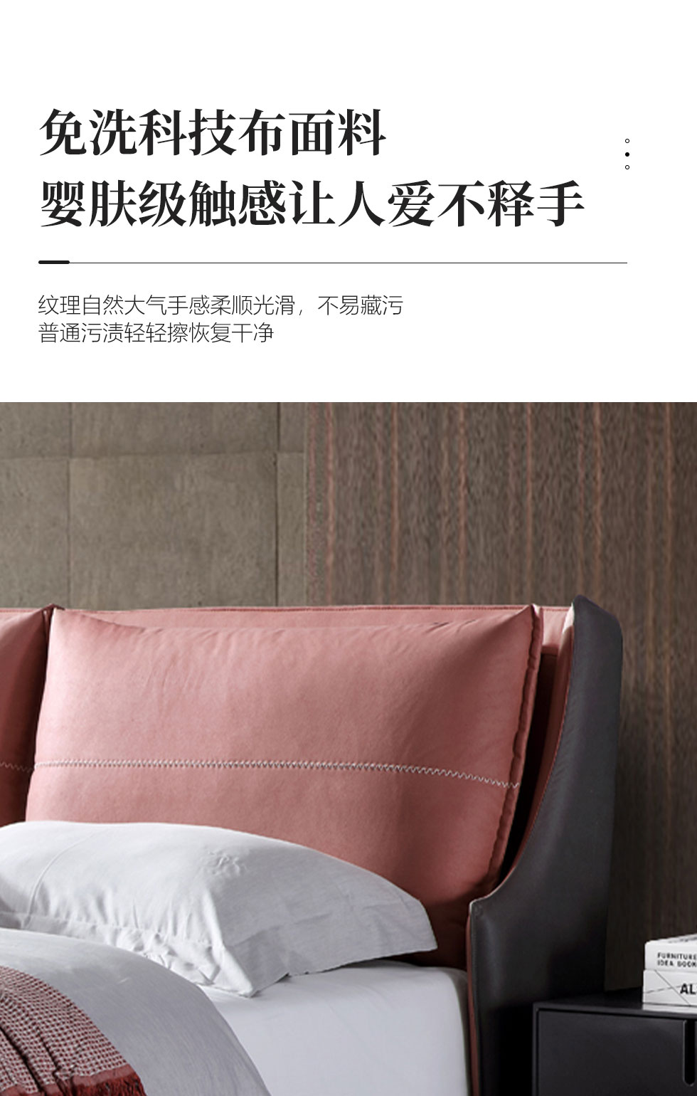 e家优选 极简 科技布 松木 实木多层板 九孔纤维棉 可拆洗 粉加灰蓝色 1.5米布床 |