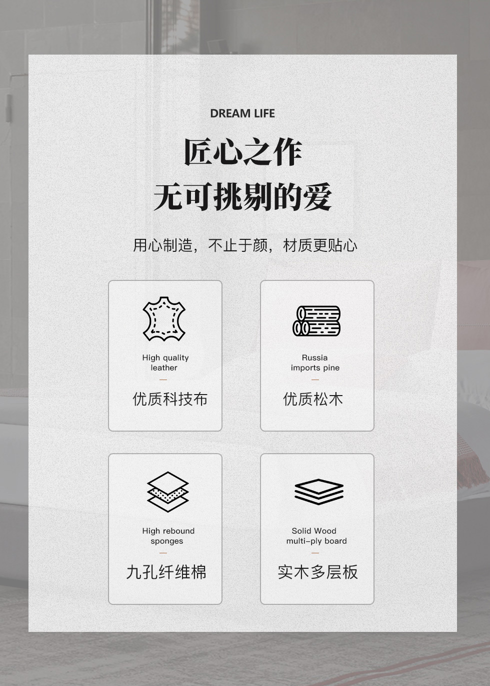 e家优选 极简 接触面靠包真皮 松木 实木多层板 米黄色 1.8米皮床¥4870
