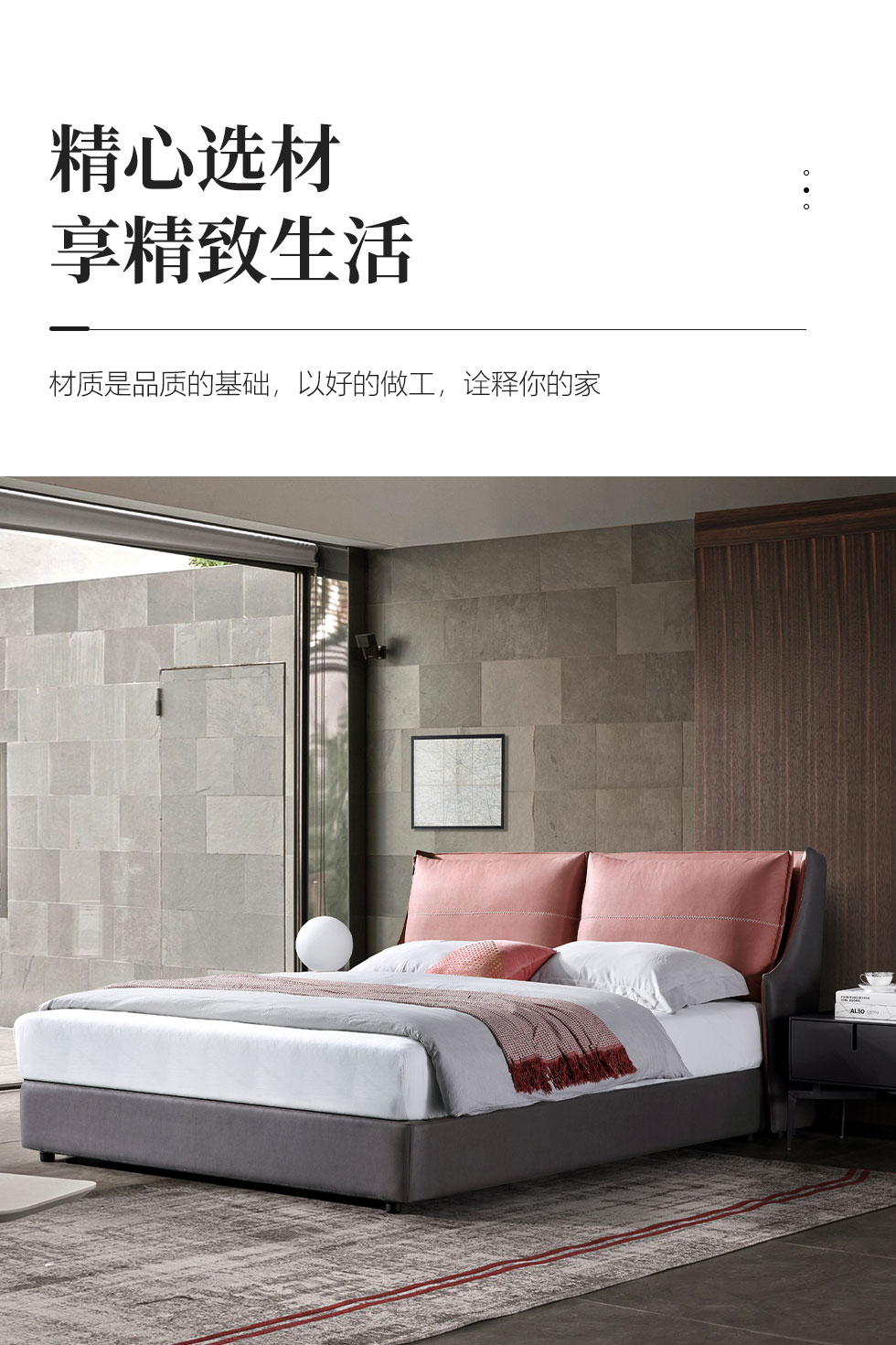 e家优选 极简 接触面头层牛皮 松木 实木多层板 羽绒 绿色 1.8米皮床¥4052