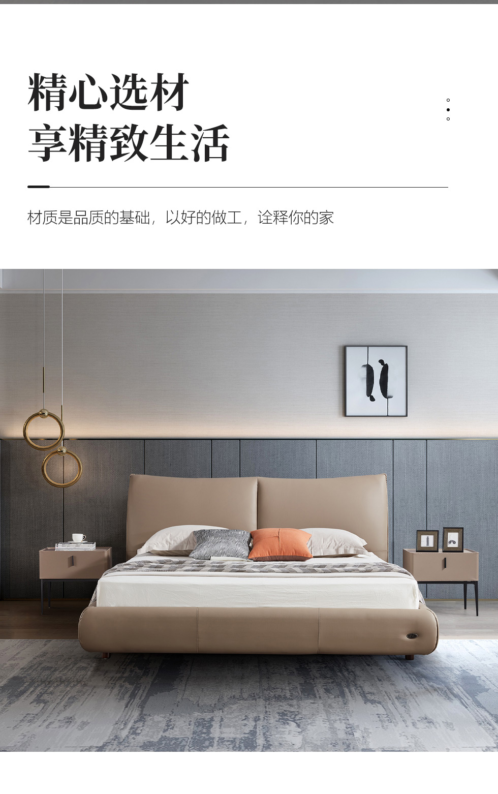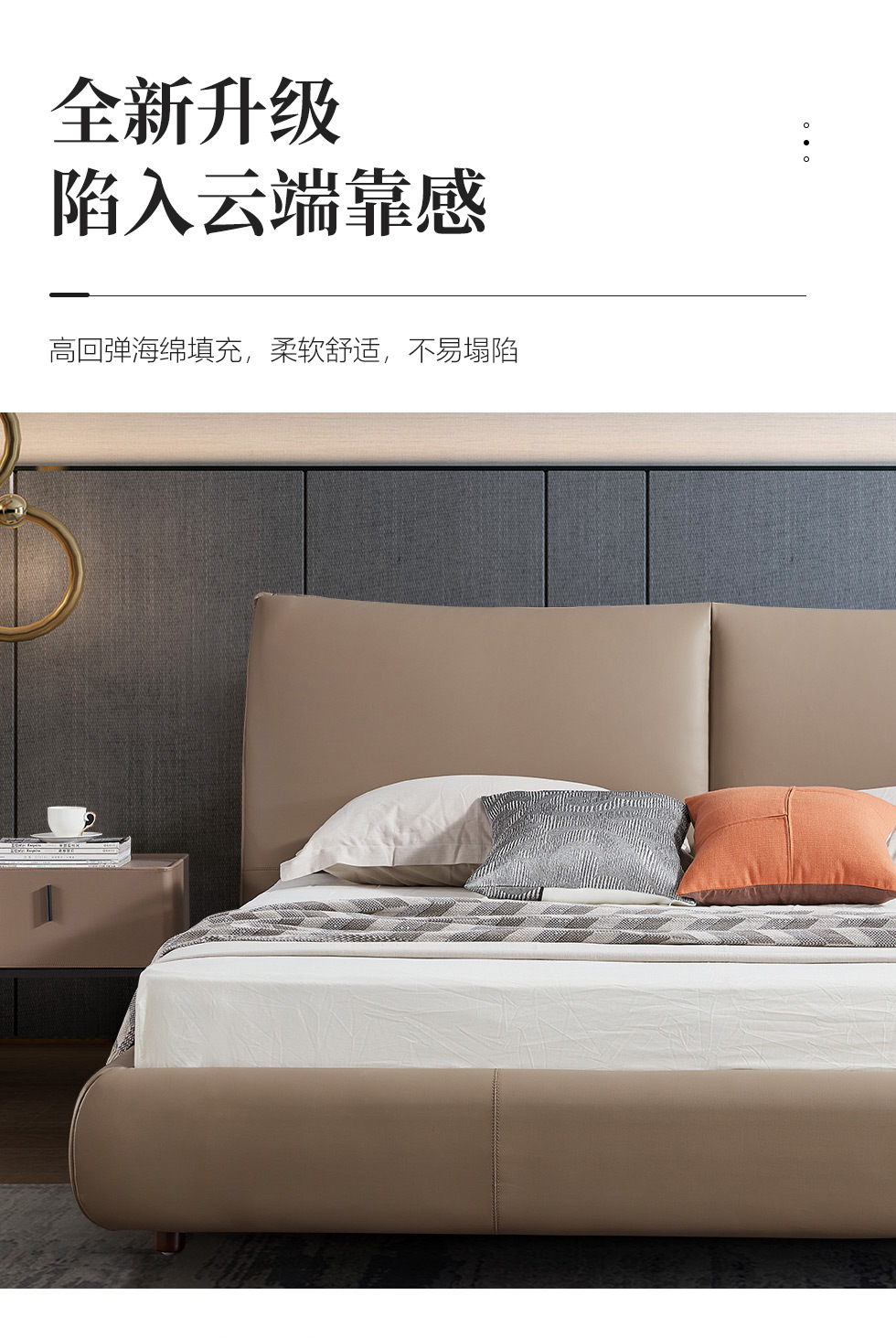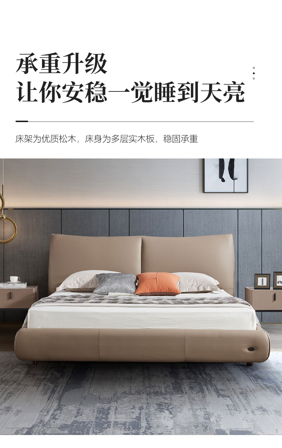 e家优选 现代简约 接触面头层牛皮 松木 实木多层板 九孔纤维棉 咖灰色 1.8米皮床¥3875