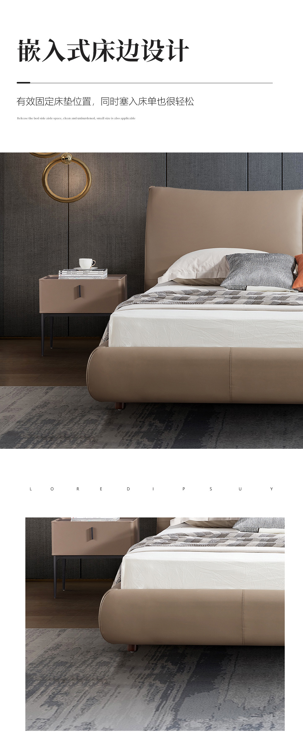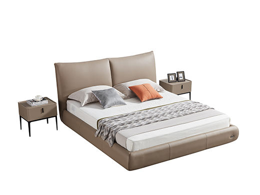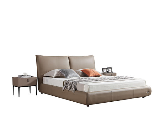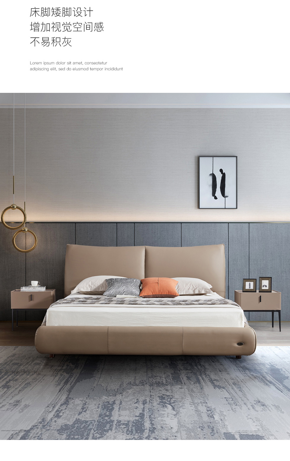 e家优选 现代简约 接触面头层牛皮 松木 实木多层板 九孔纤维棉 咖灰色 1.8米皮床¥3875