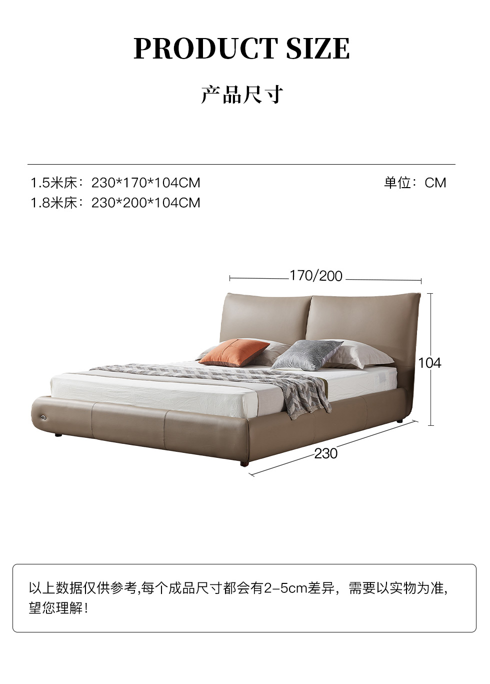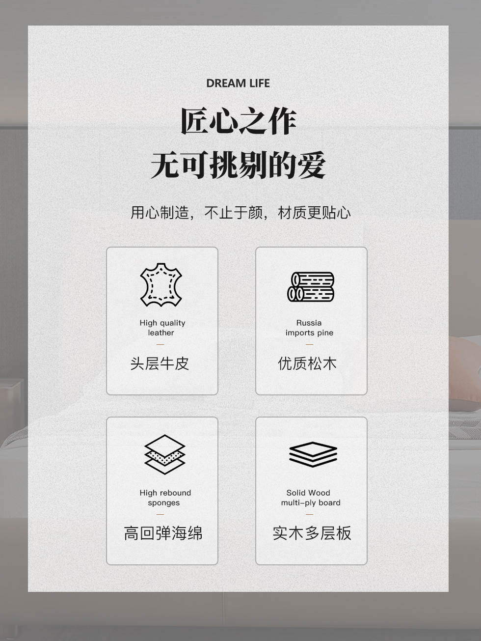 e家优选 极简 接触面头层牛皮 松木 实木多层板 高回弹海绵 杏色 1.8米皮床 |