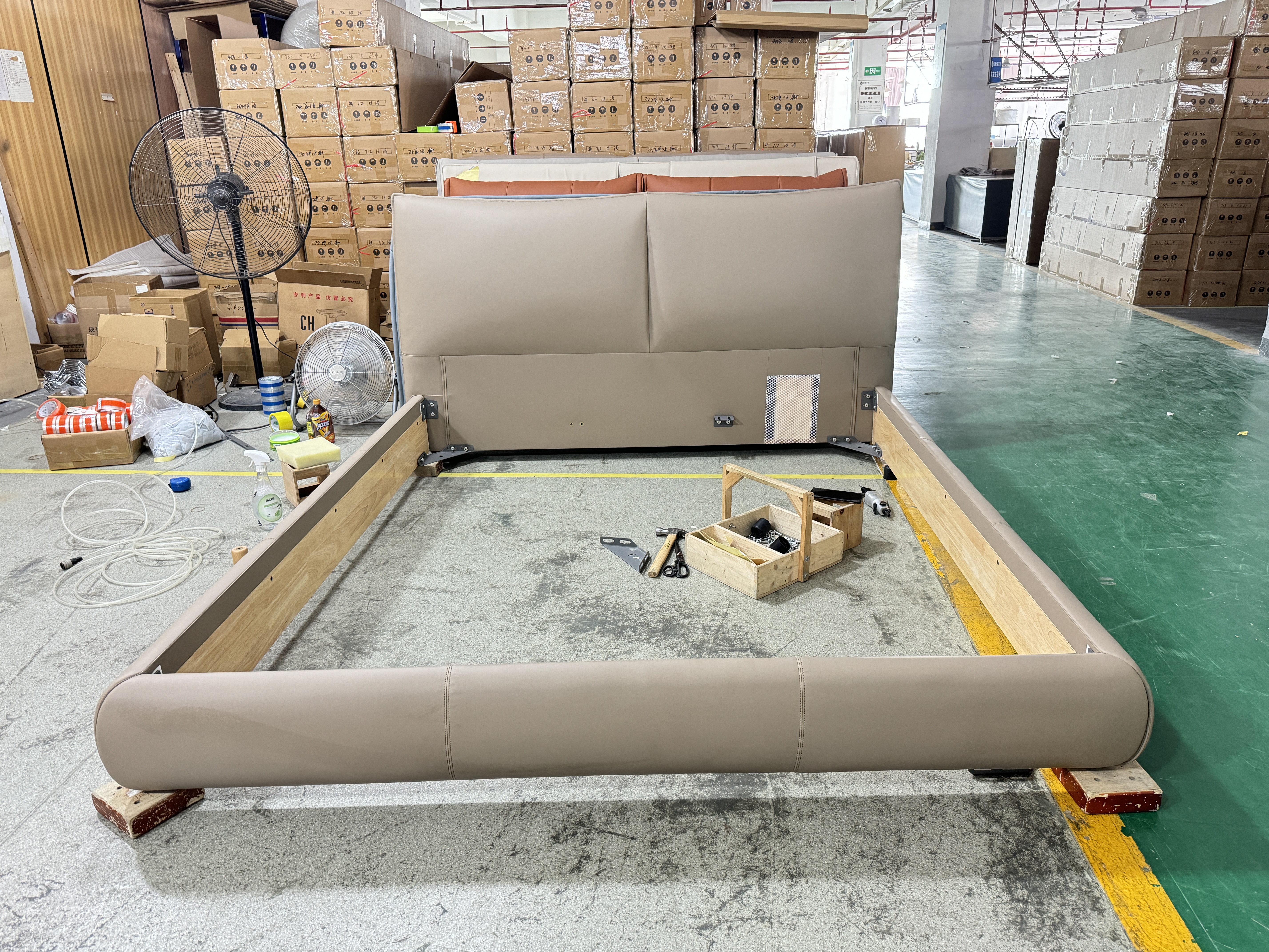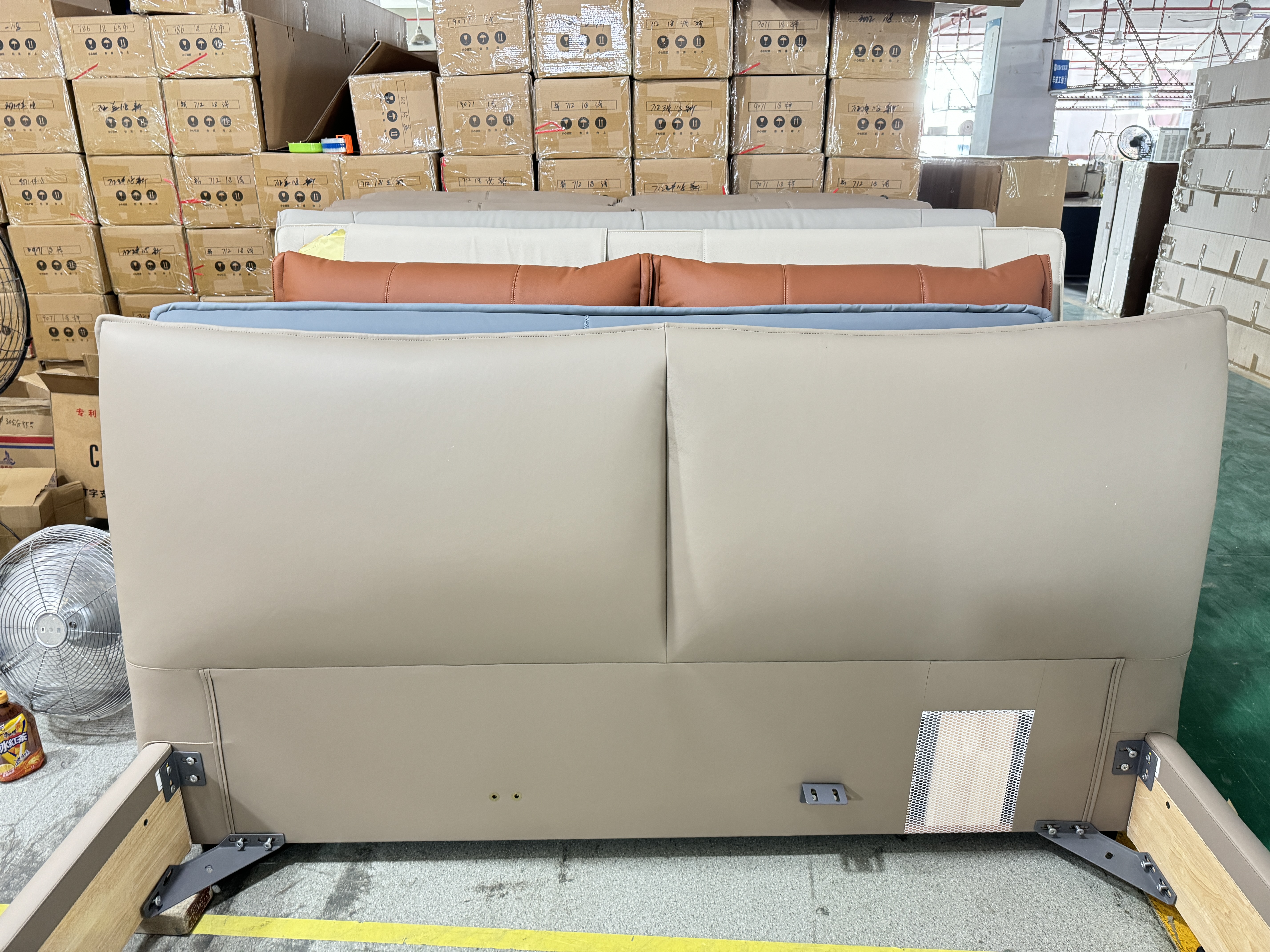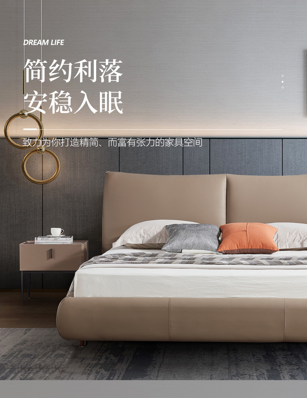 e家优选 极简 接触面靠包真皮 松木 高回弹海绵 排骨架 米色 1.8米皮床¥5324