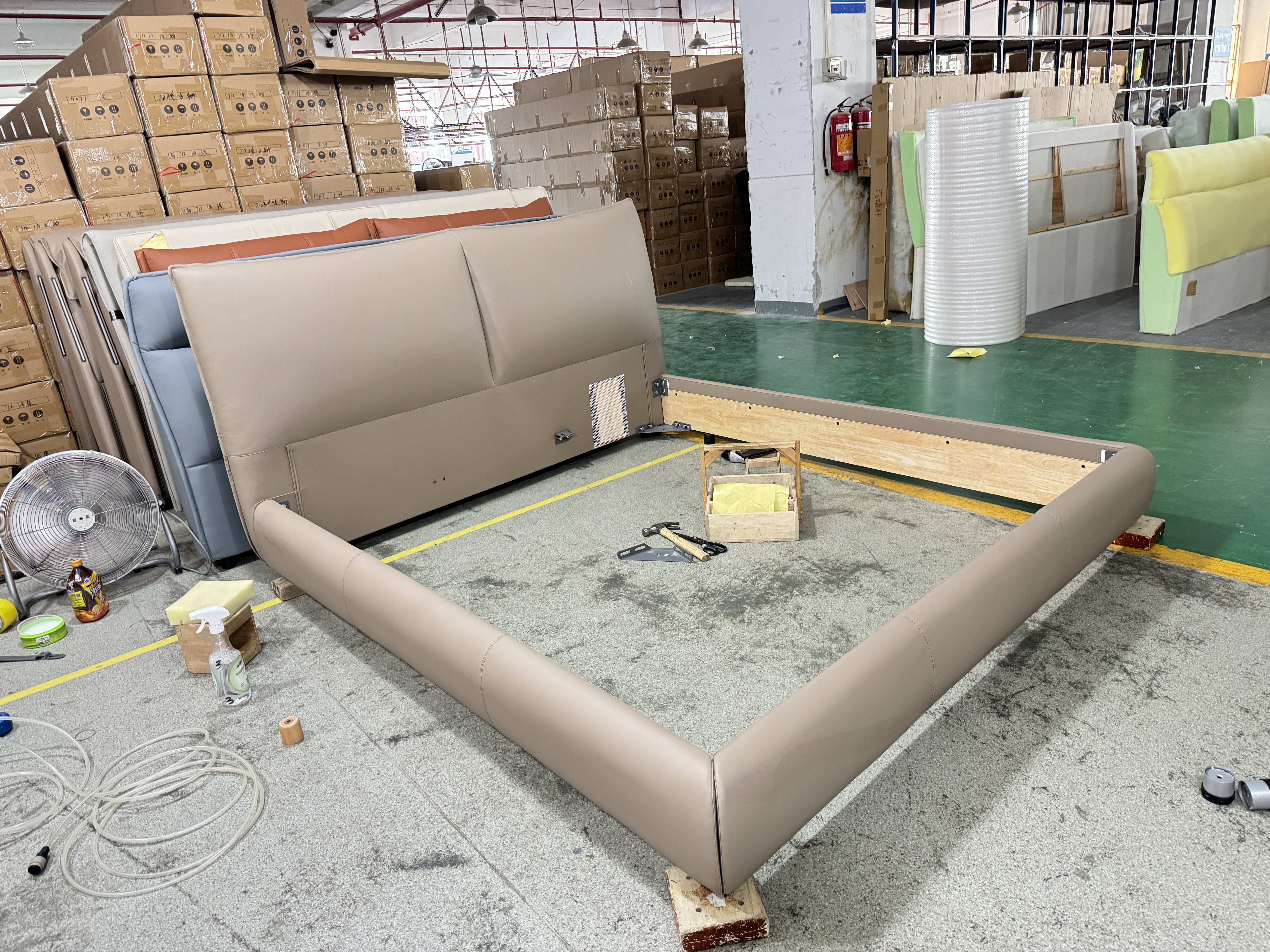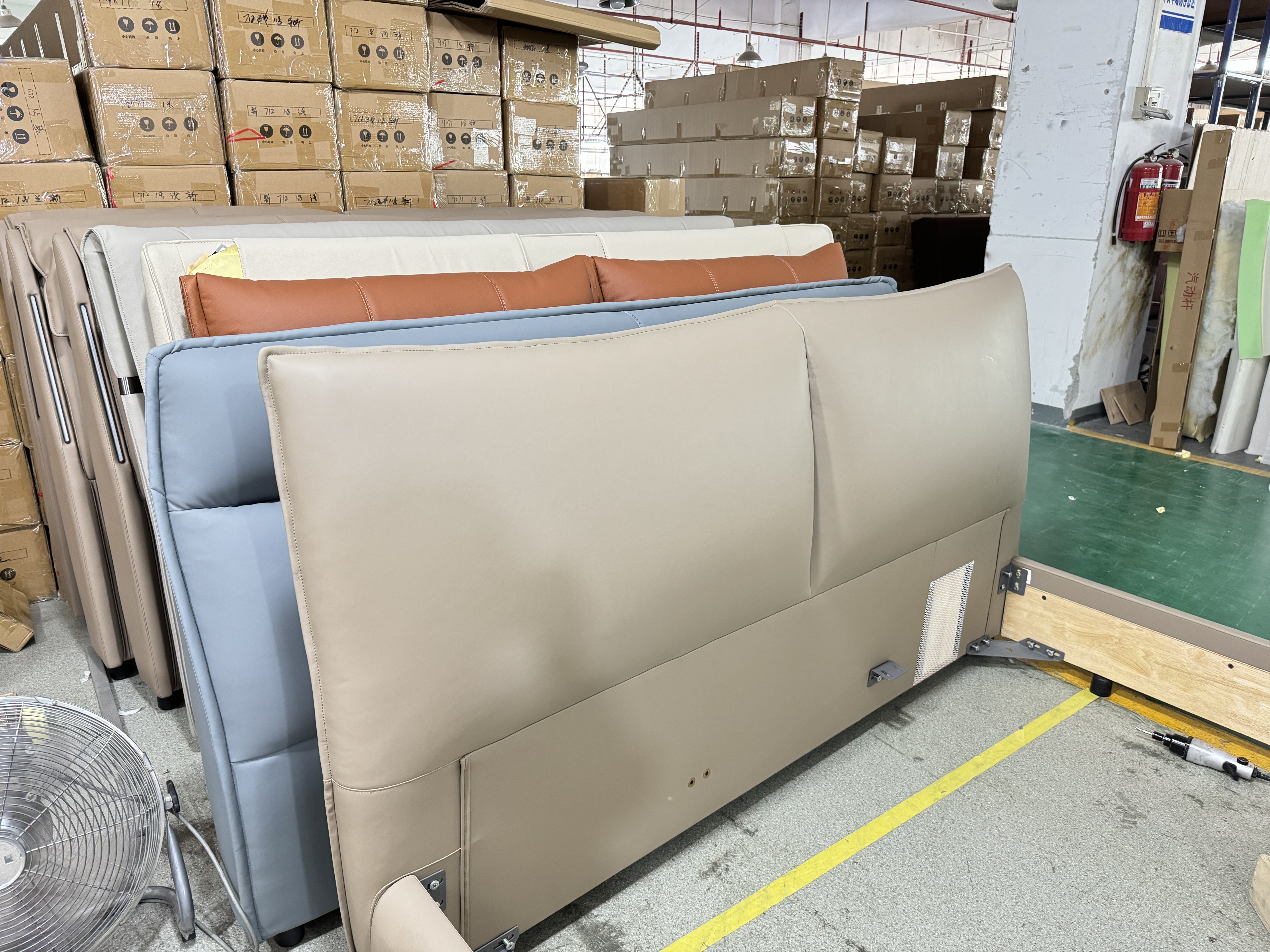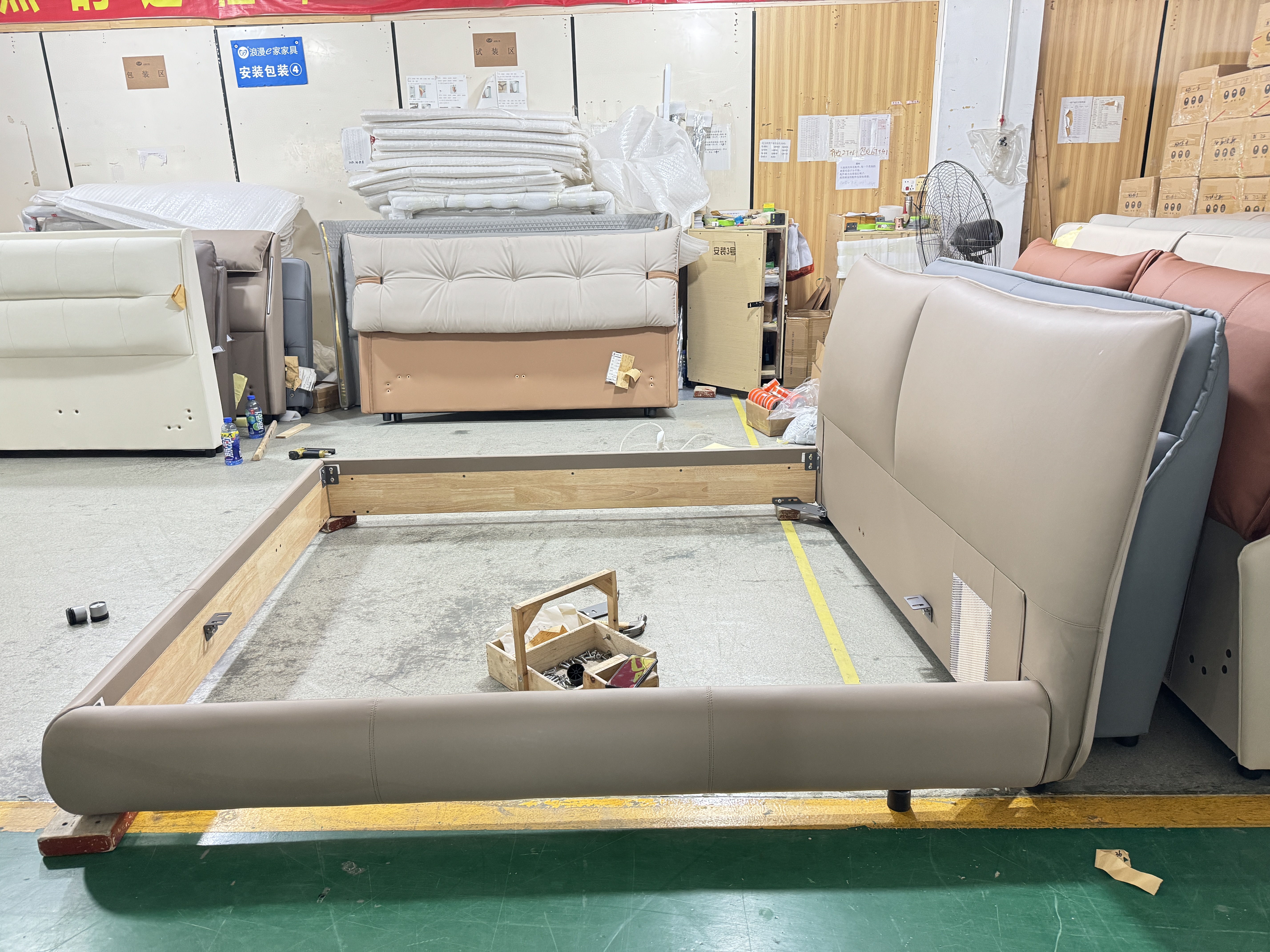 e家优选 极简 接触面靠包真皮 松木 高回弹海绵 排骨架 米色 1.8米皮床¥5324