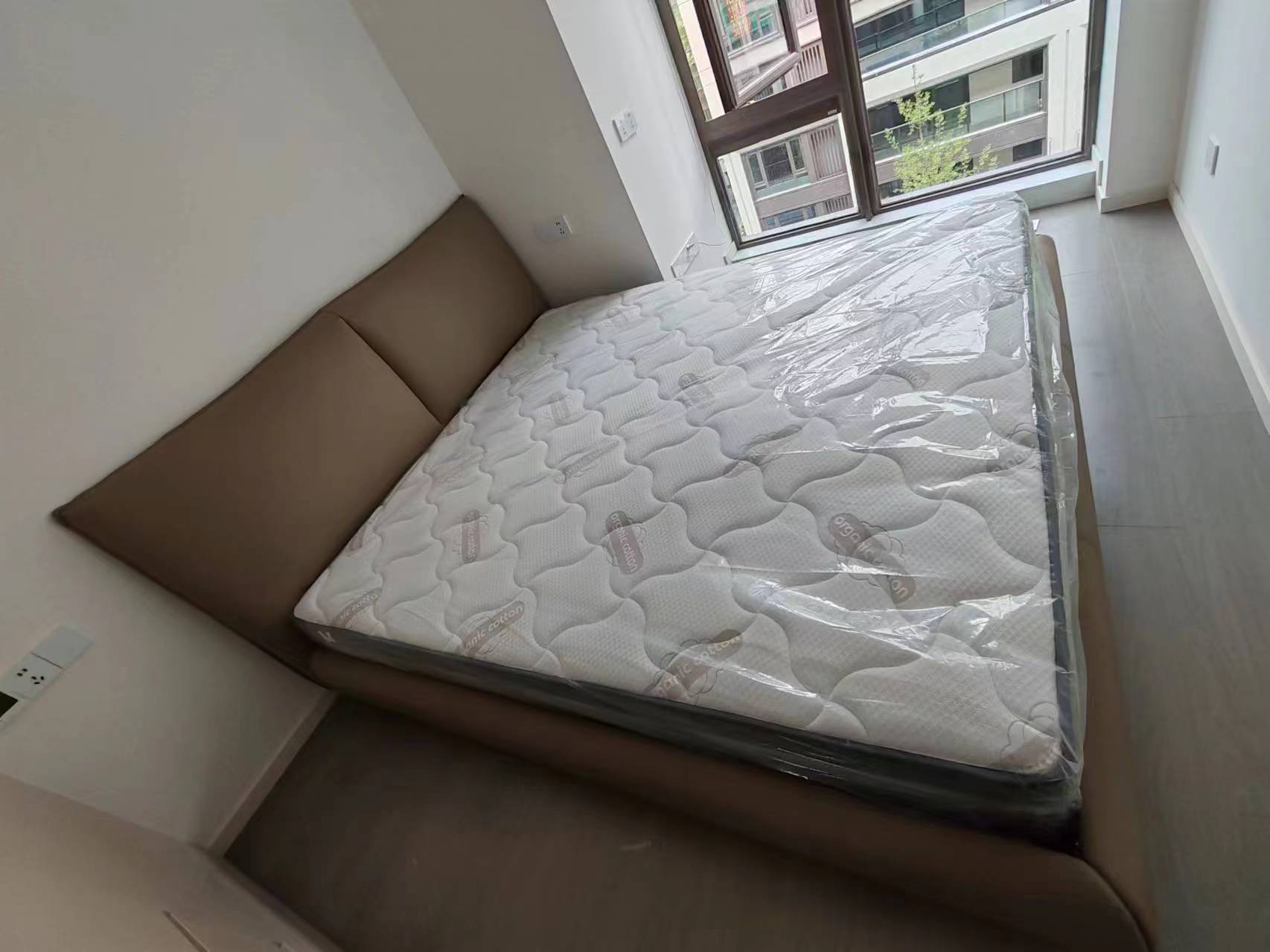e家优选 极简 接触面靠包真皮 松木 实木多层板 九孔纤维棉 绿色 1.8米皮床¥3849